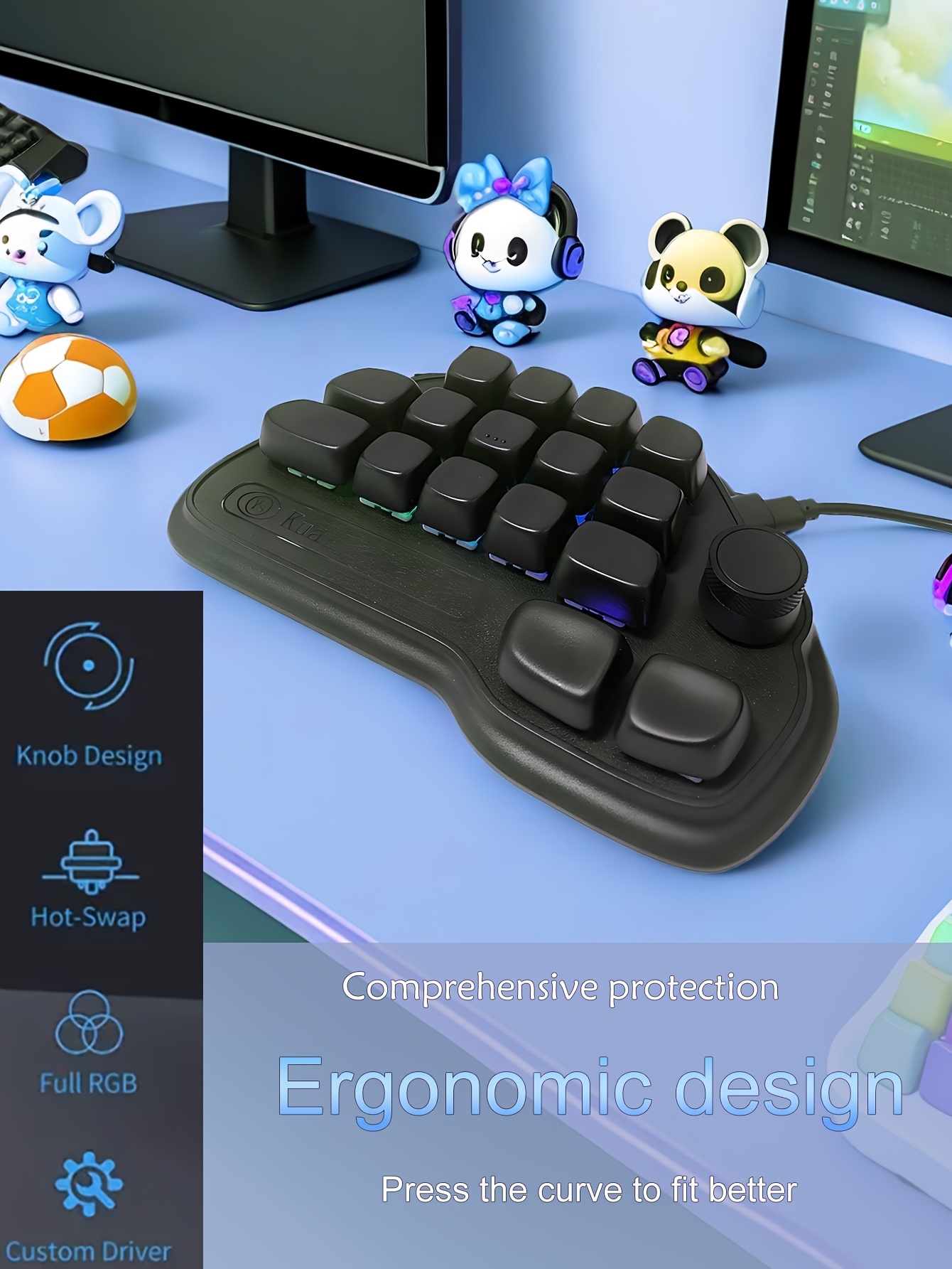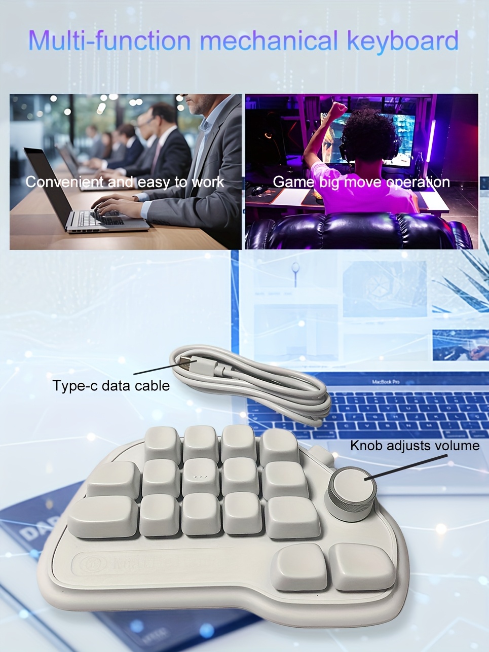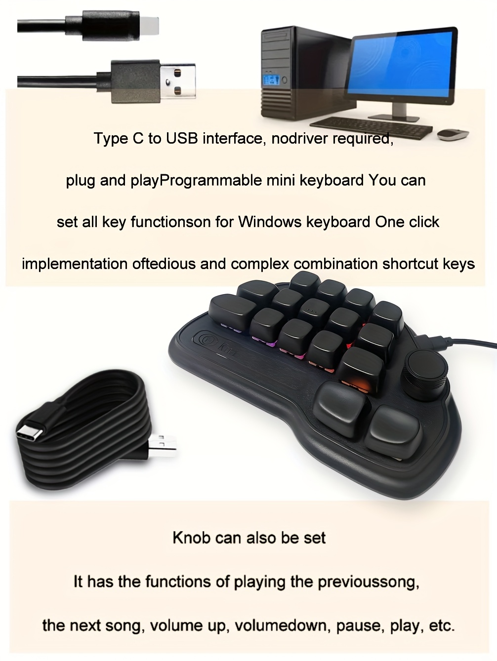 17-Key Keyboard with RGB Lighting, USB-C Wired Connection, Keys for Office, Gaming, PS, Programming - Efficient & Fast Operation, Gaming Setup, Tech Enthusiasts, Durable Build, Ergonomic Design, Sleek Design, Modern Aesthetic, Home Office Setup