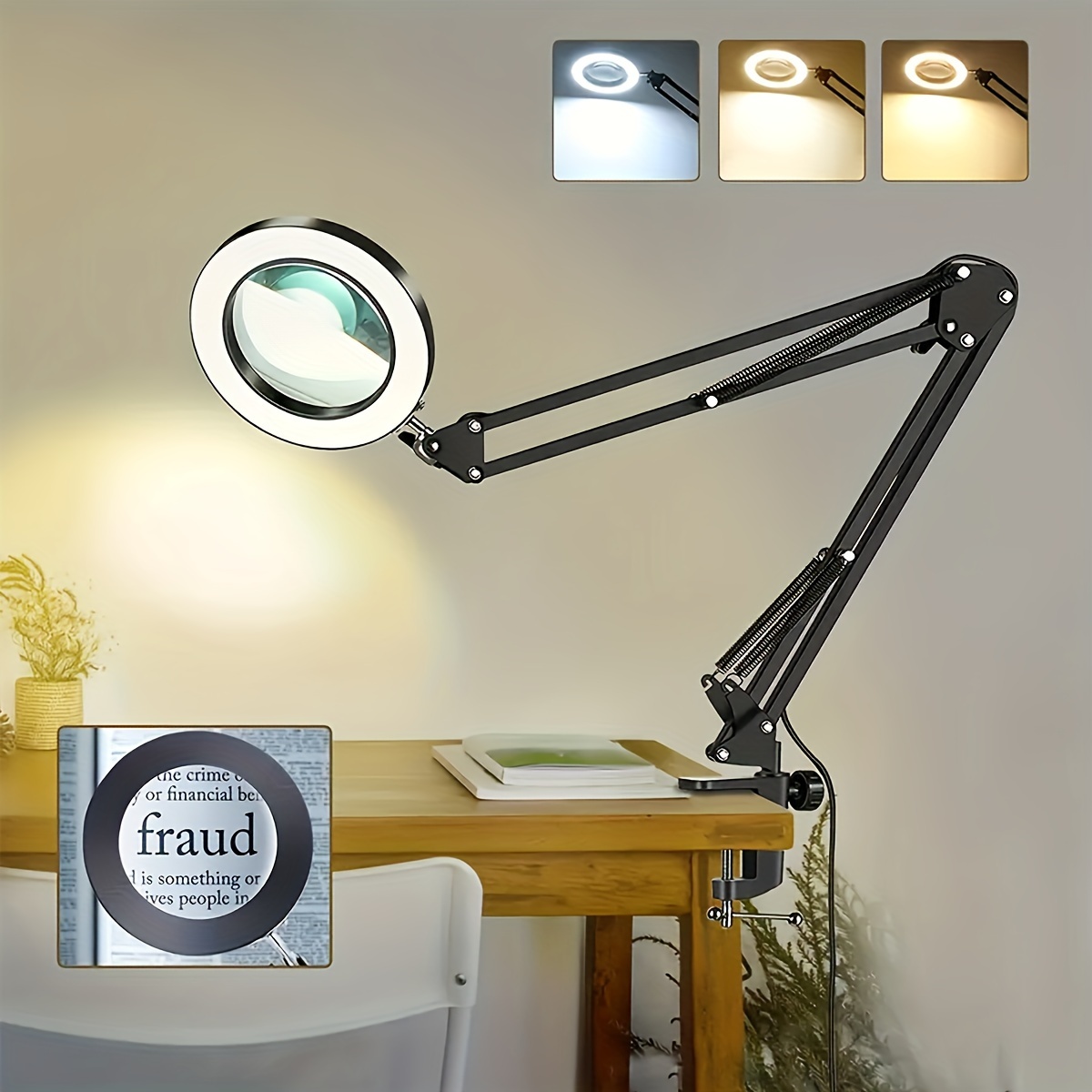 1pc, Foldable Magnifying Desk Lamp, USB Powered with Fixed Device, 3 Adjustable Reading Light Modes, Suitable for Close Range Reading Handicrafts Office Study Bedroom, Prefect for Father's Day Mother's Day Friends Christmas Birthday Gifts Battery Not