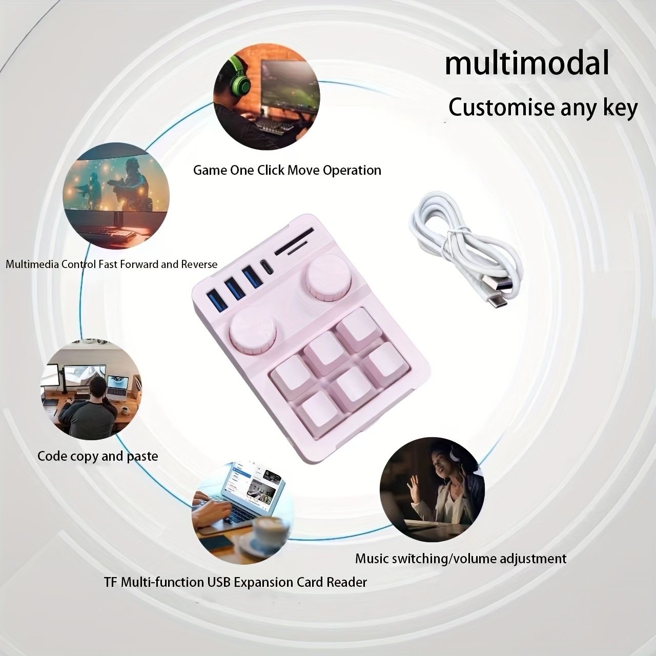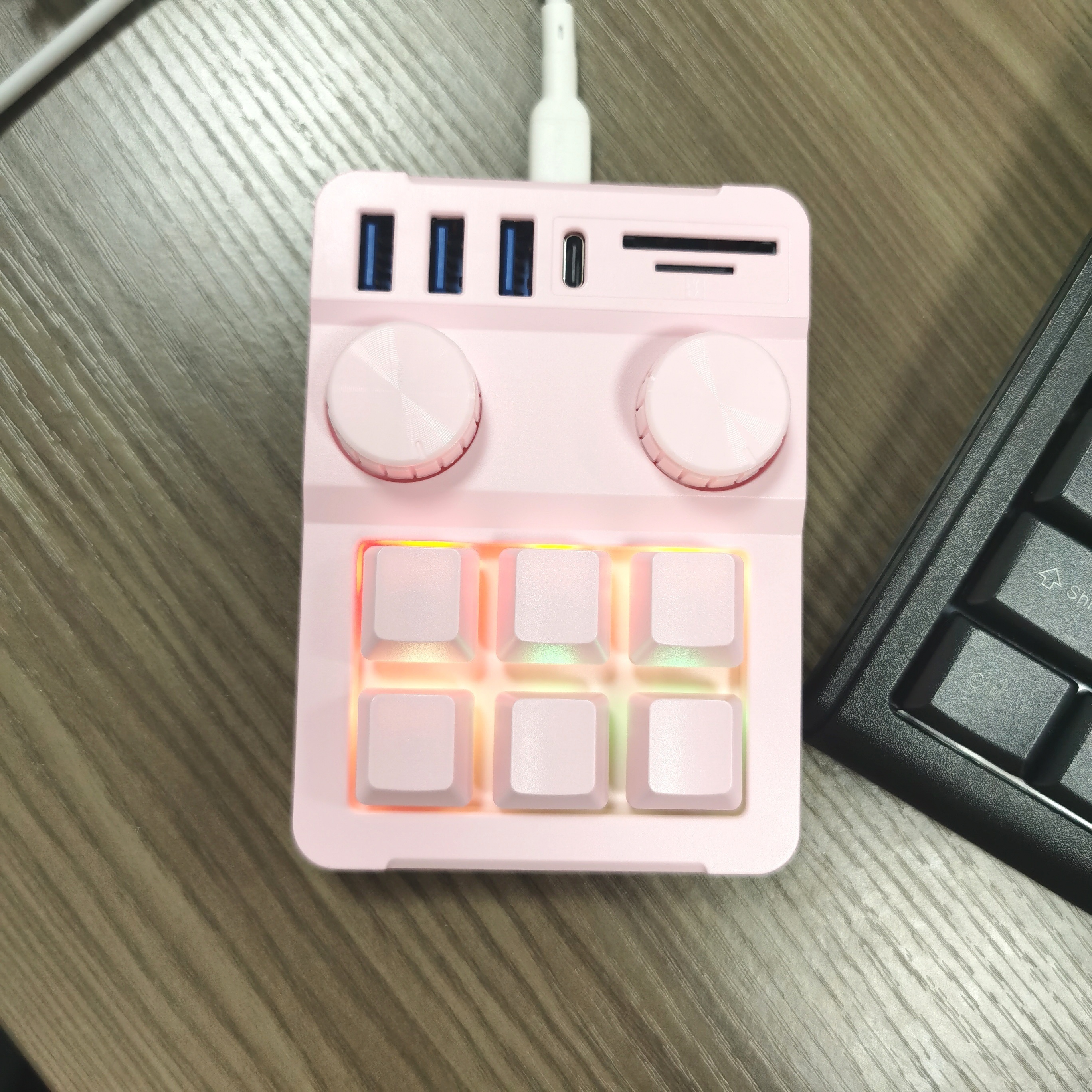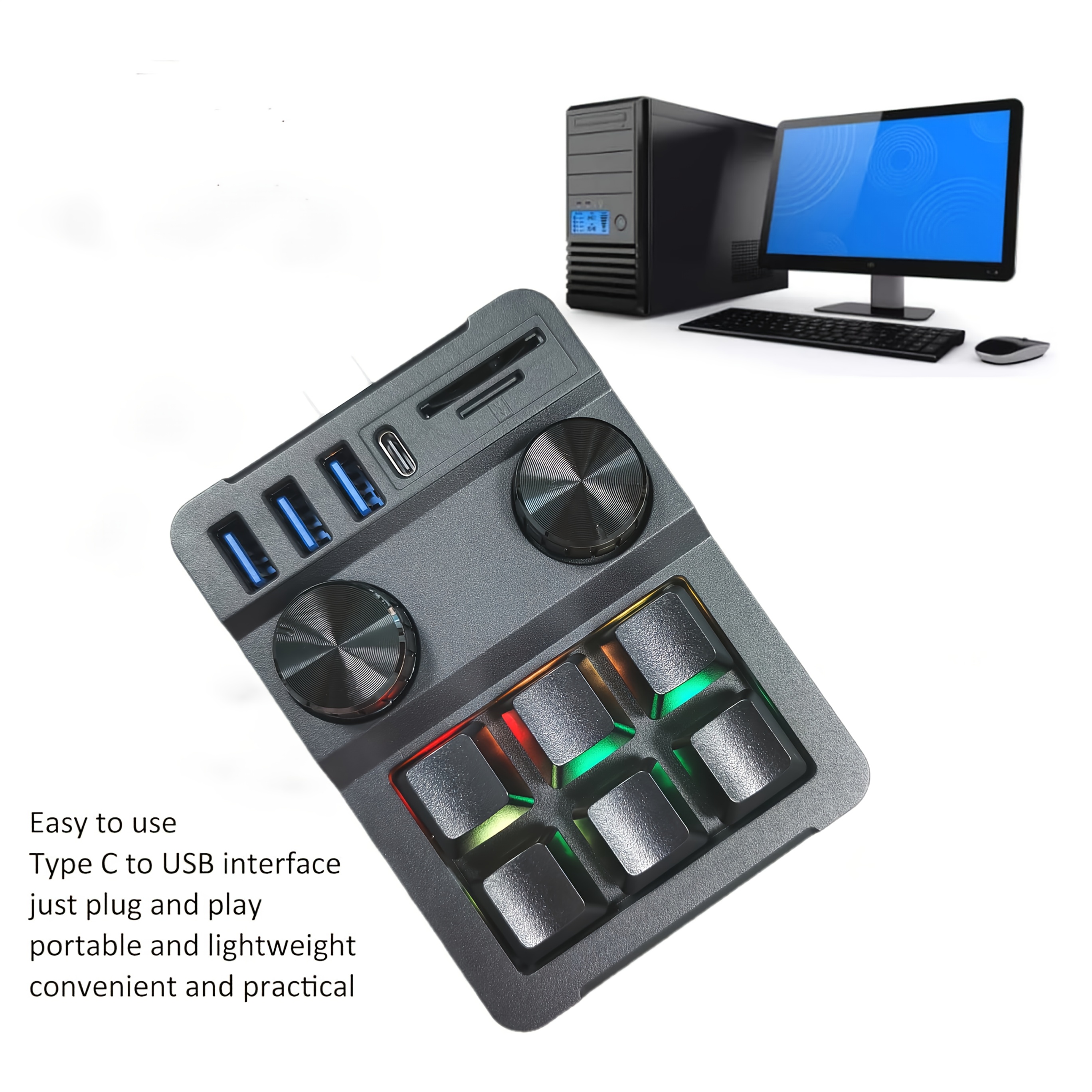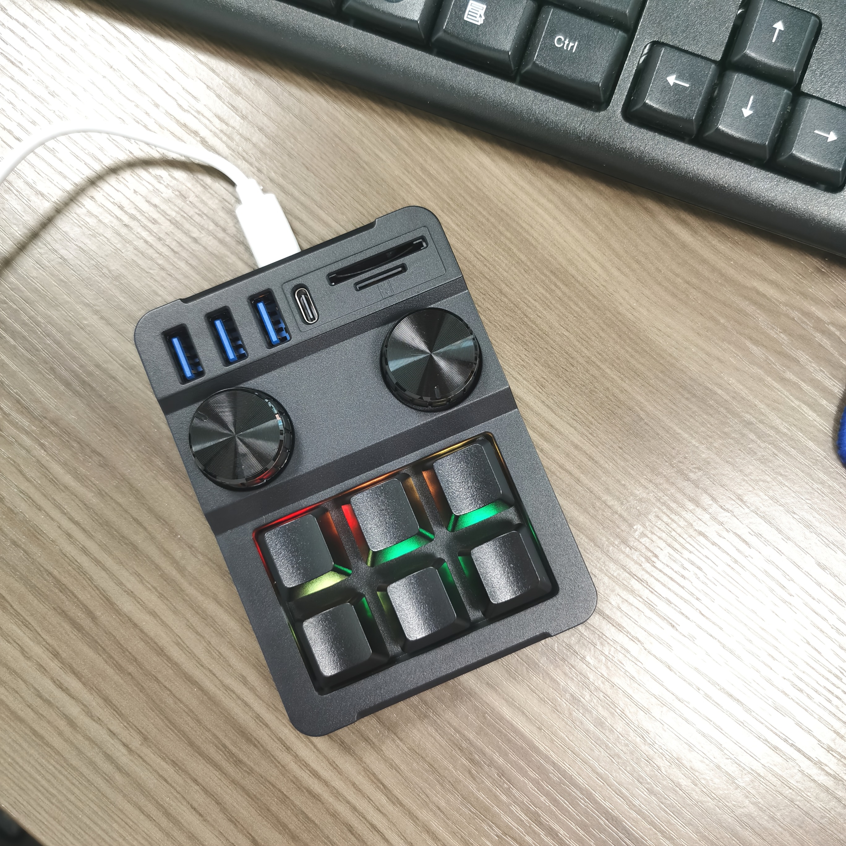 6 Knob, 18-Key Triple Function Key Keyboard with USB Hub 3-Port Data Transfer, SD/TF Card Reader Combo, Multifunctional, One Key for Paste Copy, Gaming Keyboard, Keyboard For Computer, Keyboard For Laptop, Keyboard For Pc