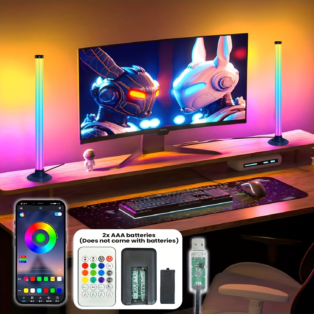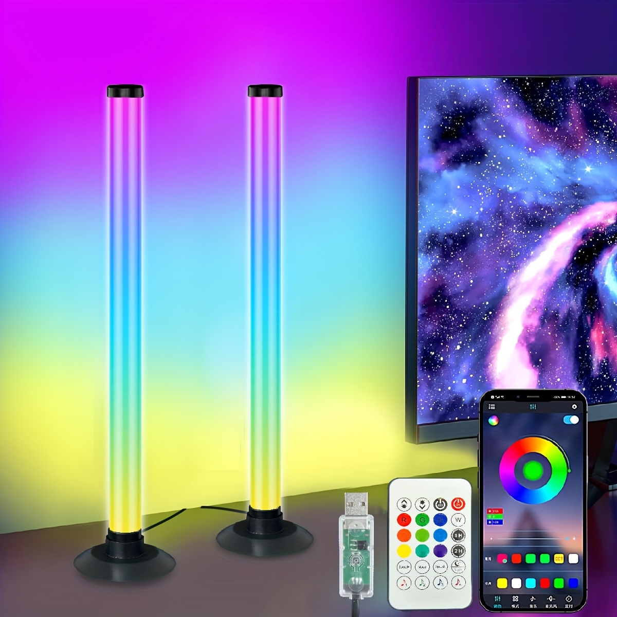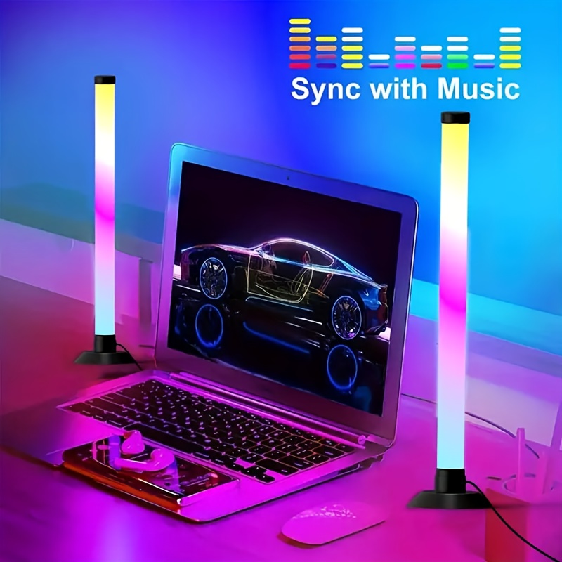 An intelligent lamp, LED desktop ambient light pickup microphone with app control and remote control featuring music synchronization function, USB-powered voice-activated rhythm lights for parties, PC gaming room modern style mood lighting set