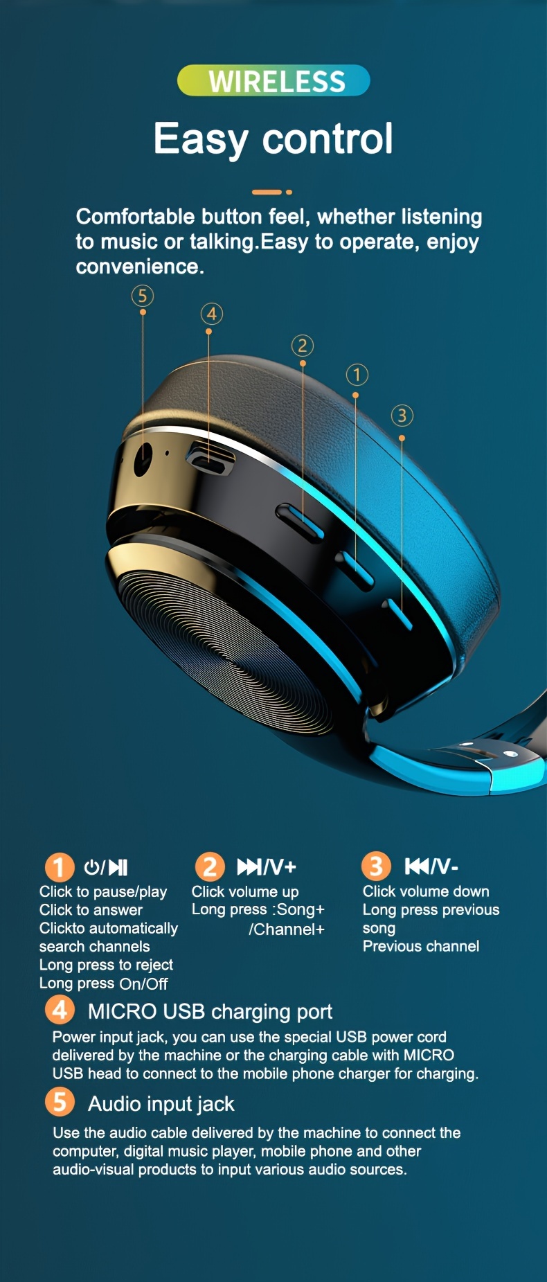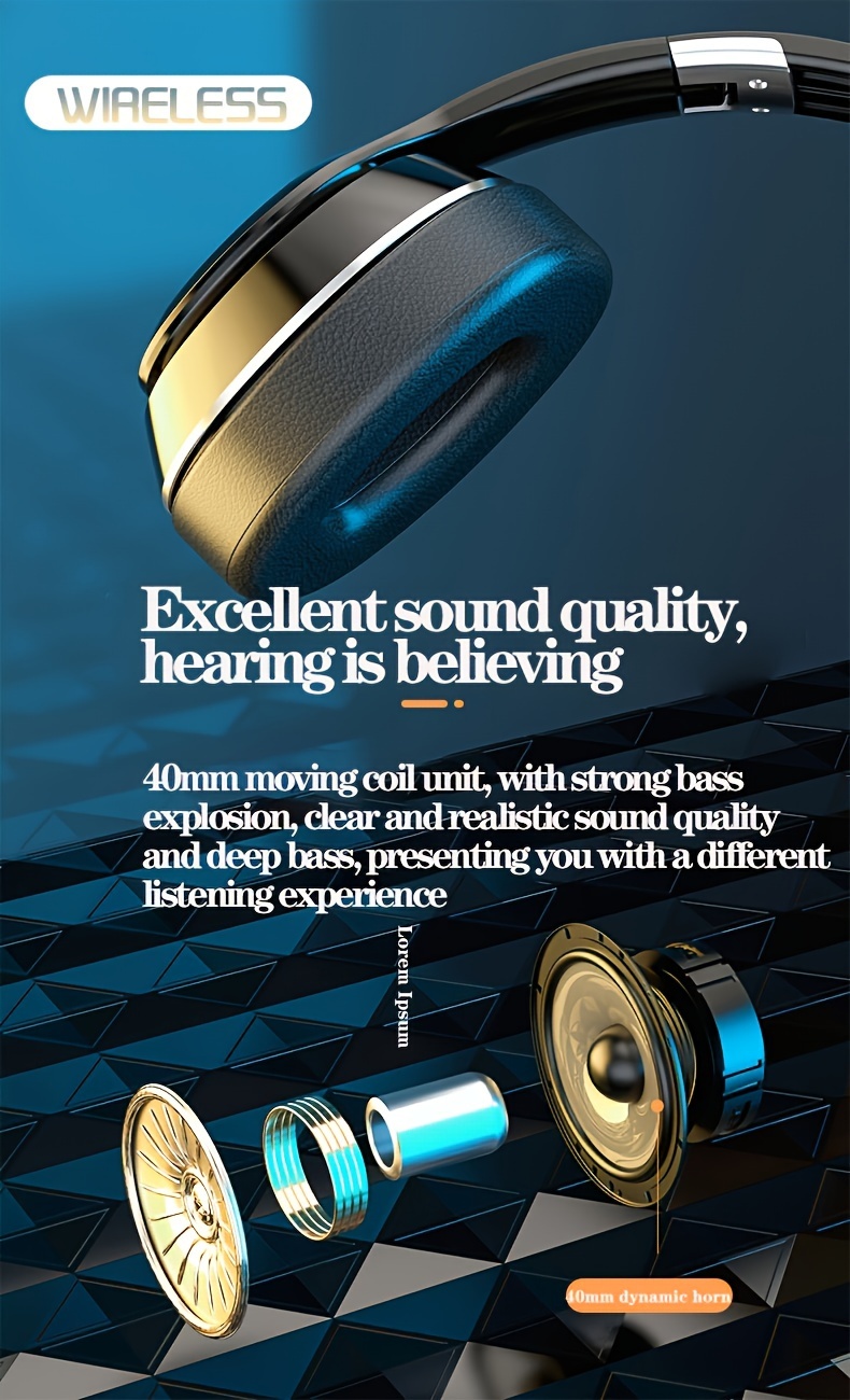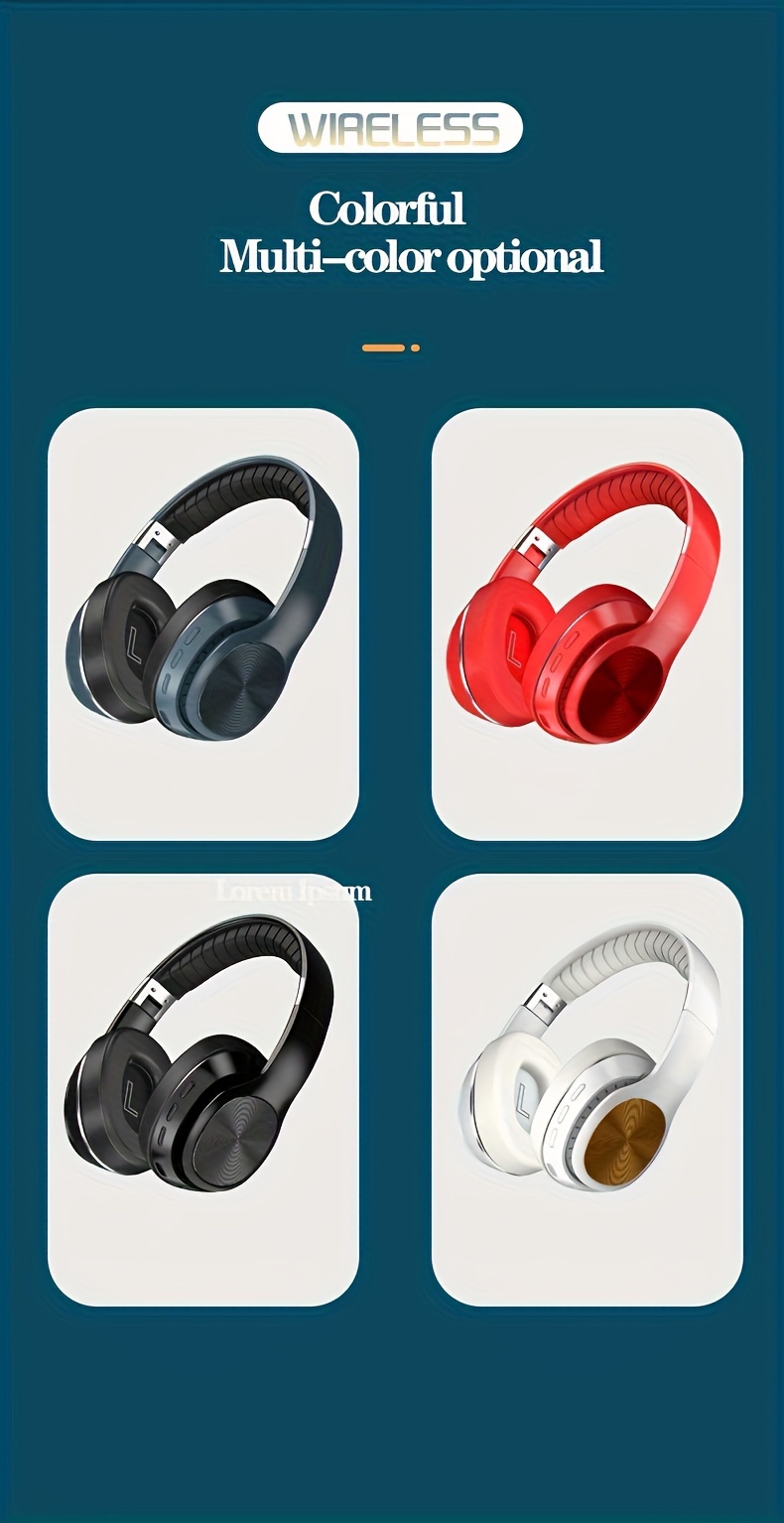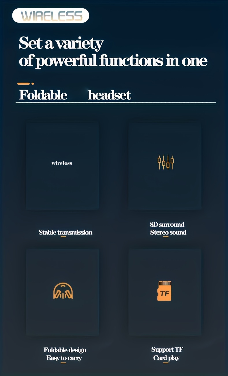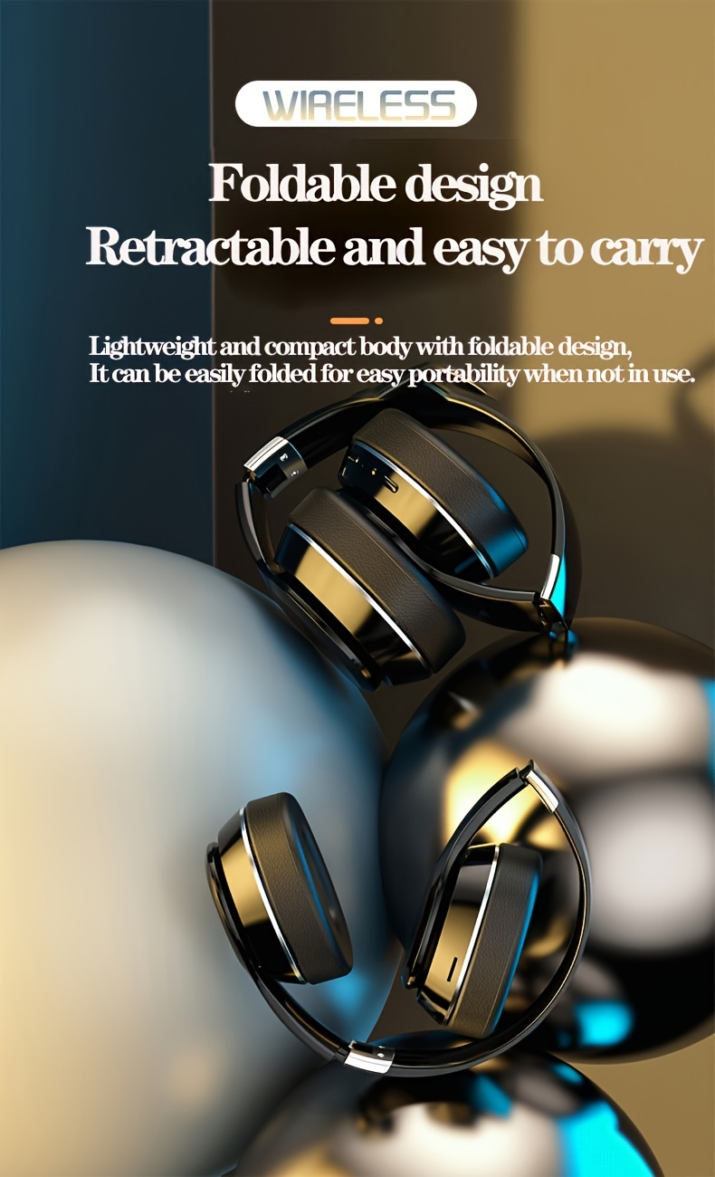 High-End Wireless Over-Ear Headphones with Wireless, Surround Sound & Noise Isolation - Foldable Closed-Back Headset, -C, Compatible with iPhone/, TF Card/SIM/Radio Modes for Gaming,, Music (, Plug-and