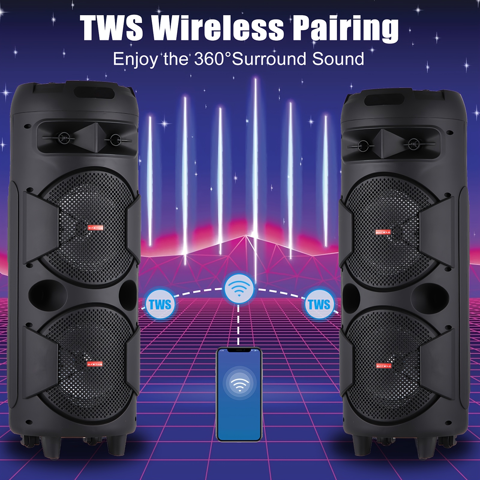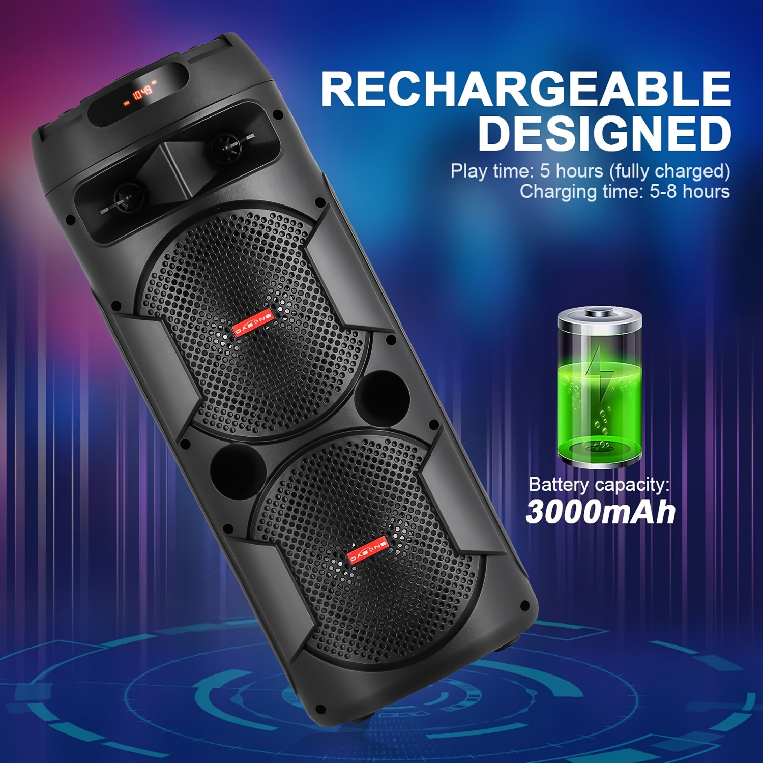 Portable Bluetooth PA Speaker - Dual 8'' Karaoke Speaker System with Microphone, Remote Control & Built-in Rechargeable Battery, MP3/USB/SD, LED Battery Indicator Lights - QS-2821