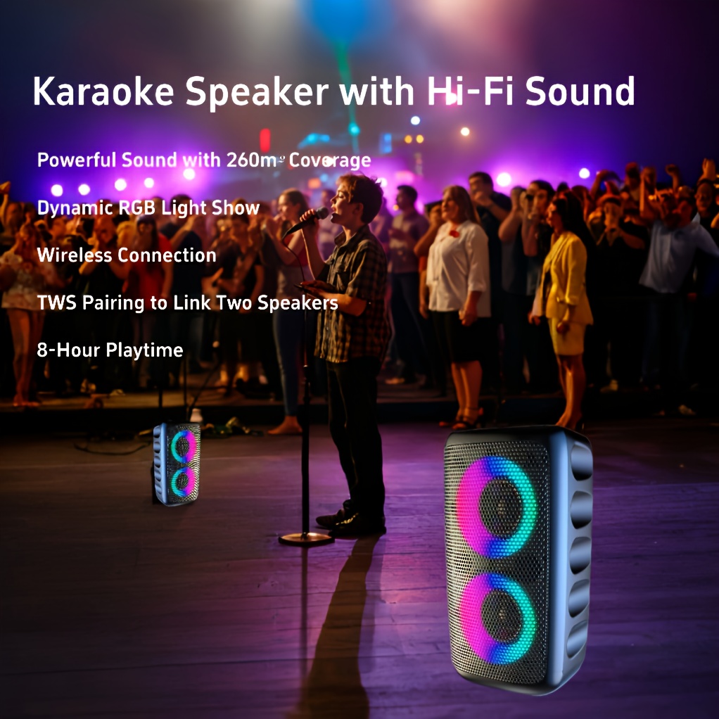 Portable Speaker, Wireless Speaker with Microphone, Large Speaker, Subwoofer, Party Disco Light, TWS, TF, AUX, MIC, Suitable for Party Use, Outdoor Wireless Speaker [Five Holiday Gifts]