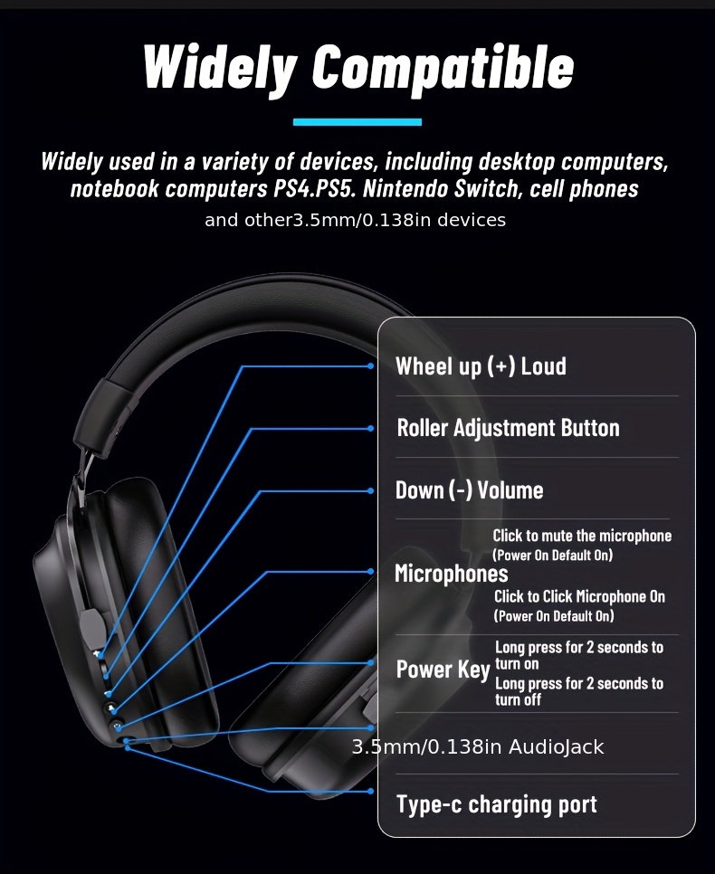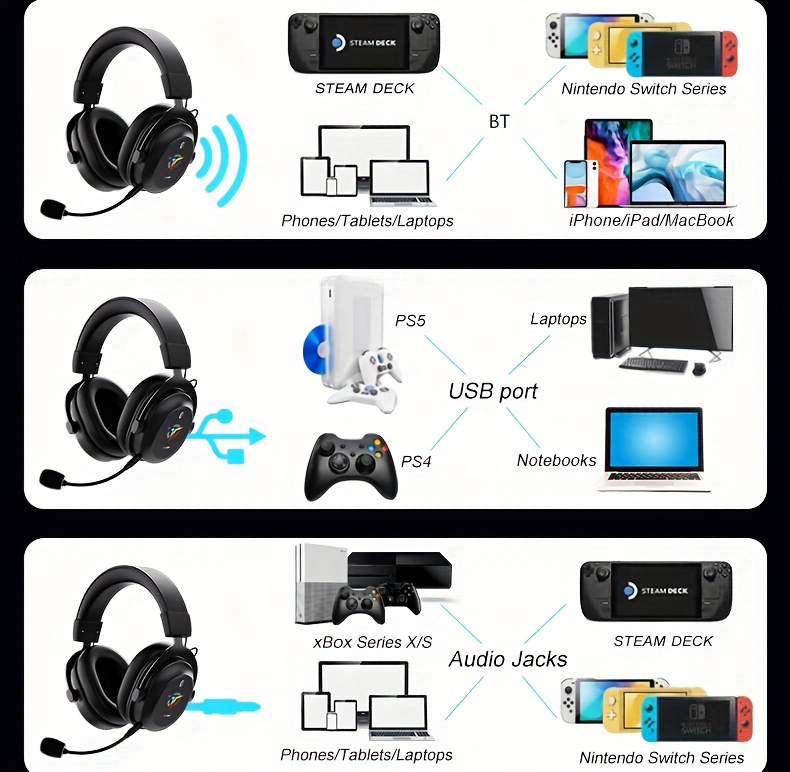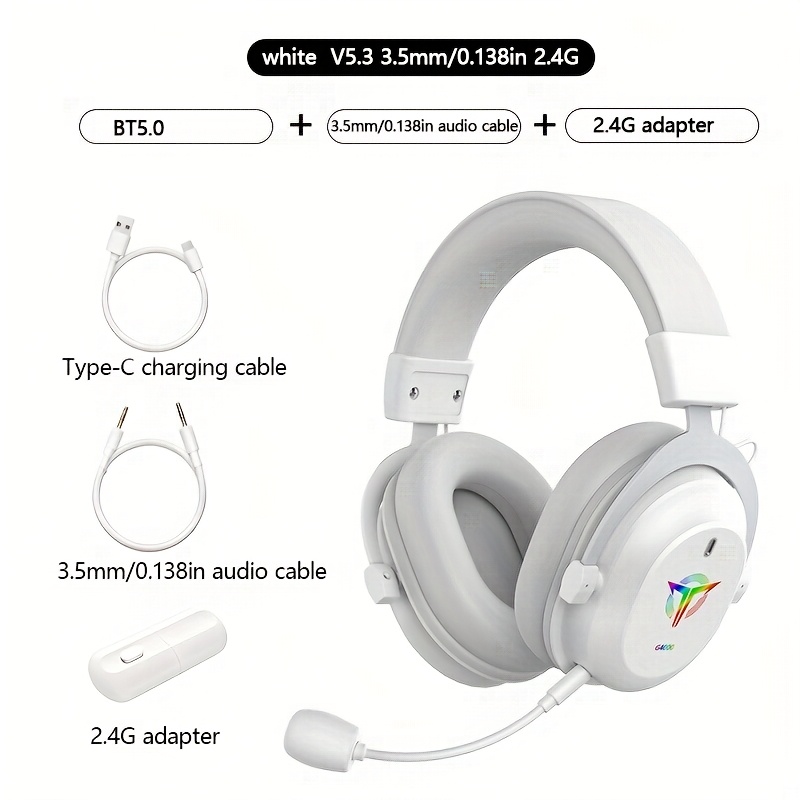 PS5 Gaming Headphones with 2.4G/BT/Wired 3-in-1 Connection, ENC Noise Cancellation, HD Vibrator, 25ms Low Latency, 50mm Large Speaker, RGB RGB Effect, Plug-in Mic, Adjustable Ear Cups, Pc, Laptop, Gaming Headphones, Pc Gaming, Modern Headphones