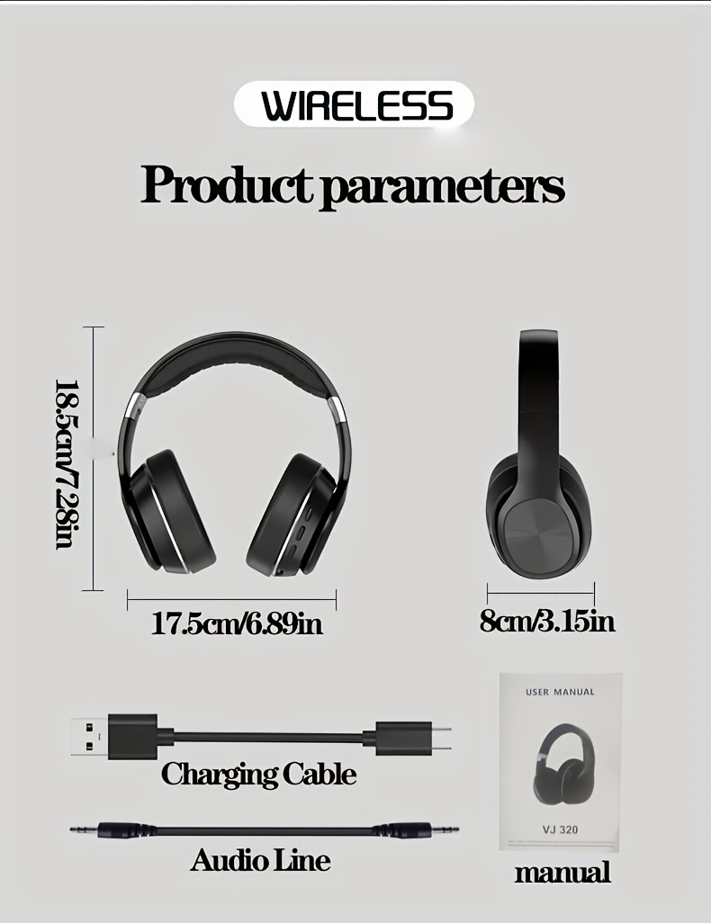 Upgraded 320 Wireless Headphones with 8D Surround Sound, Foldable Design, and Wireless Free 8D Surround.