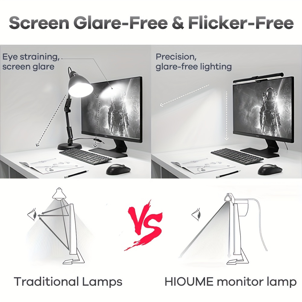 USB-Powered LED Computer Screen Light with Adjustable Color Temperature & Dimmable Brightness - 3 Levels, Touch Buttons for Desk/Office/Home, No Screen Glare, USB Cue Included, Home Lighting, Modern Lighting, Sleek Design, Adjustable Brightness, Home Users