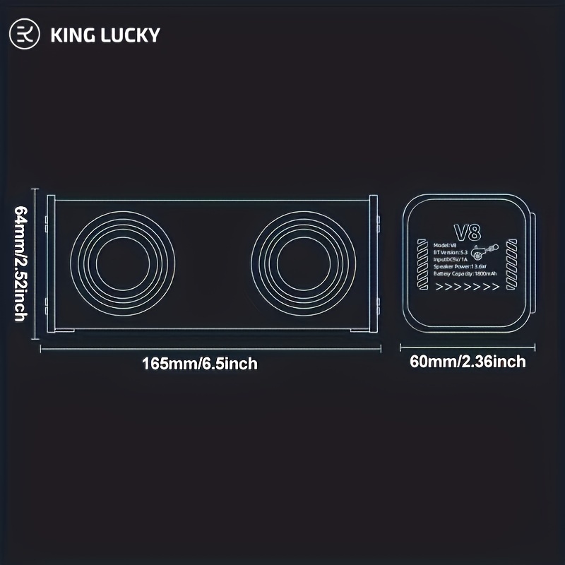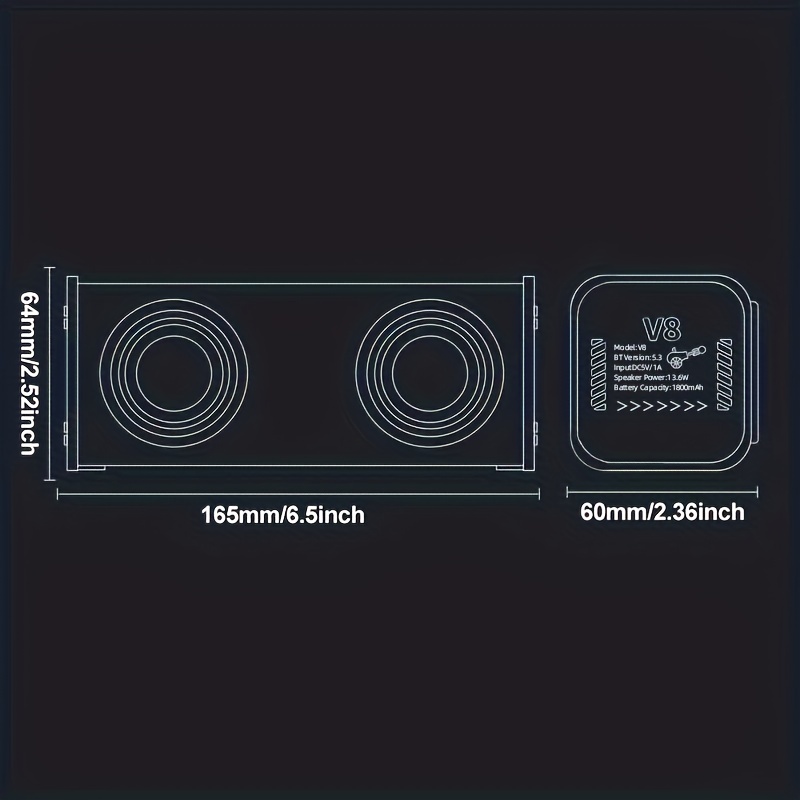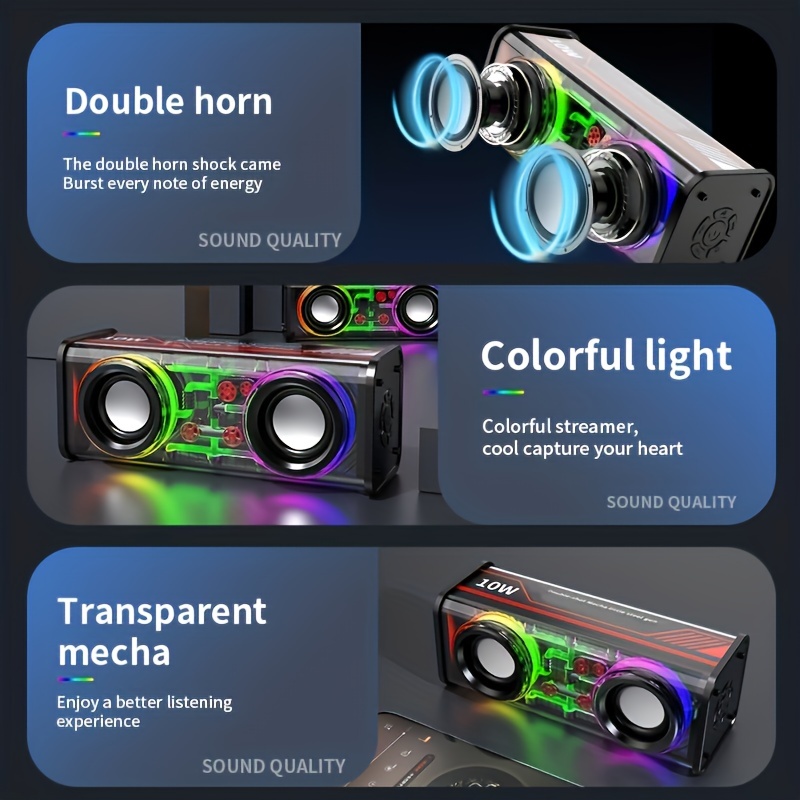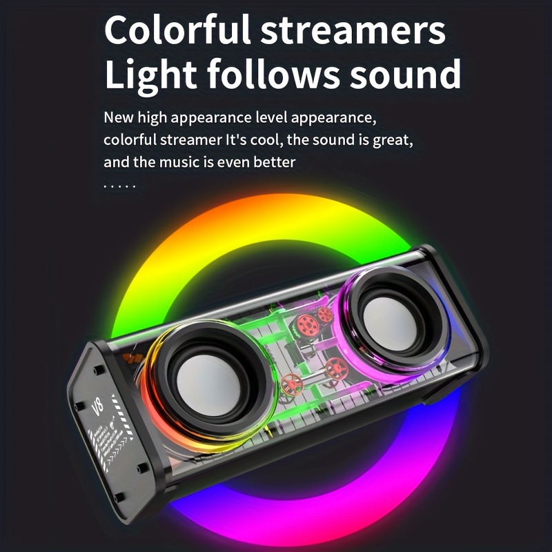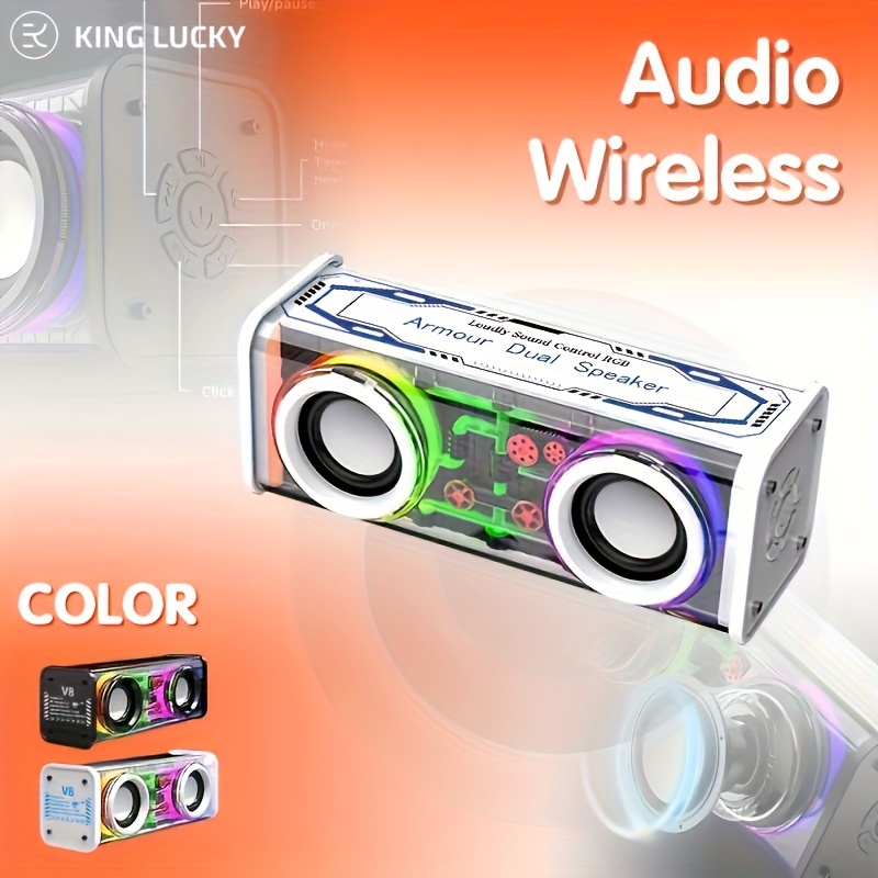 V8 Portable Wireless Bass Speaker with Subwoofer, BT 5.3, Stereo Speaker with Dual Speakers, Hifi Stereo Sound, Color-Changing LED Light, Booming Bass, Large Volume