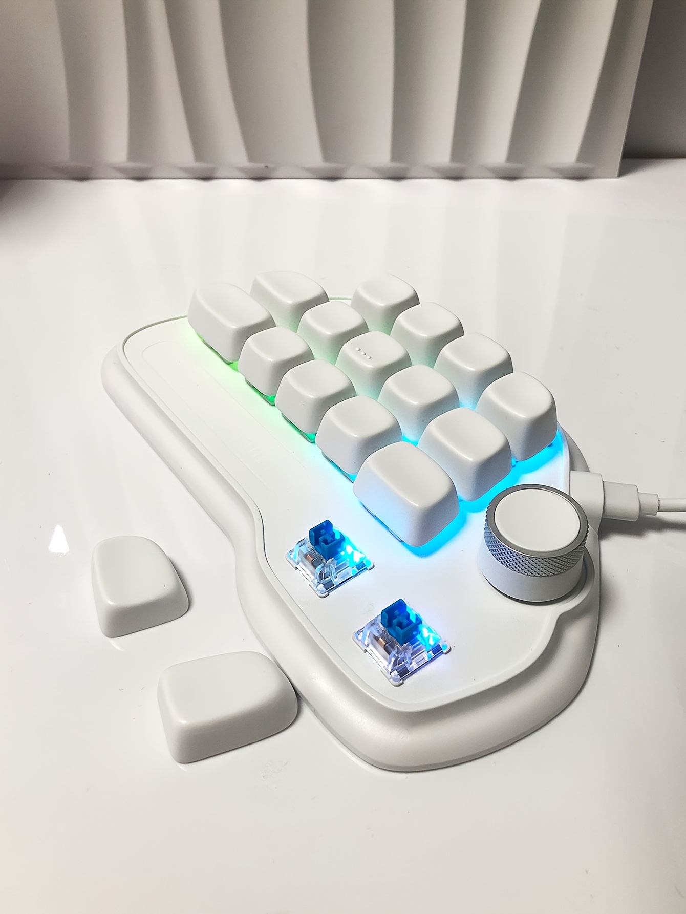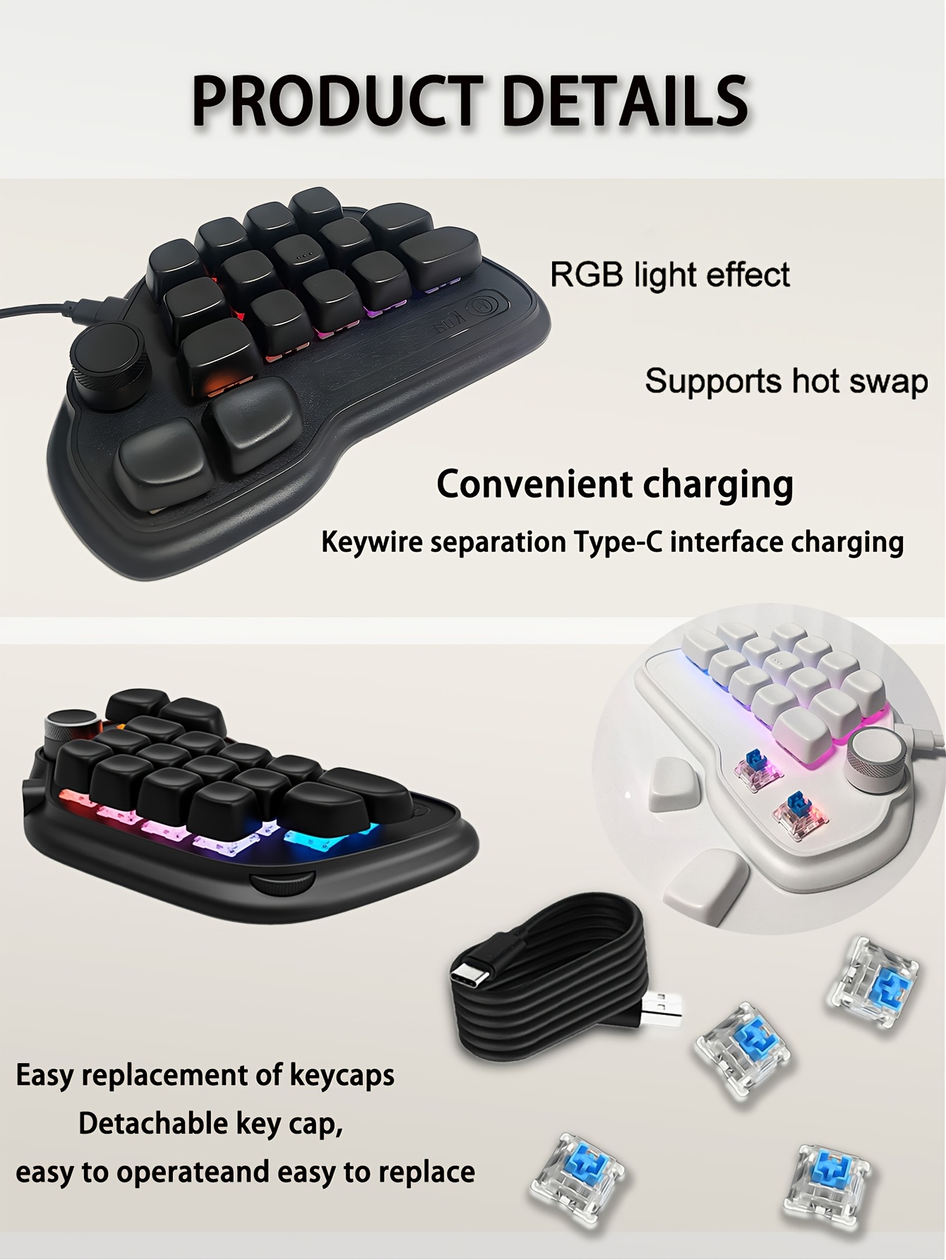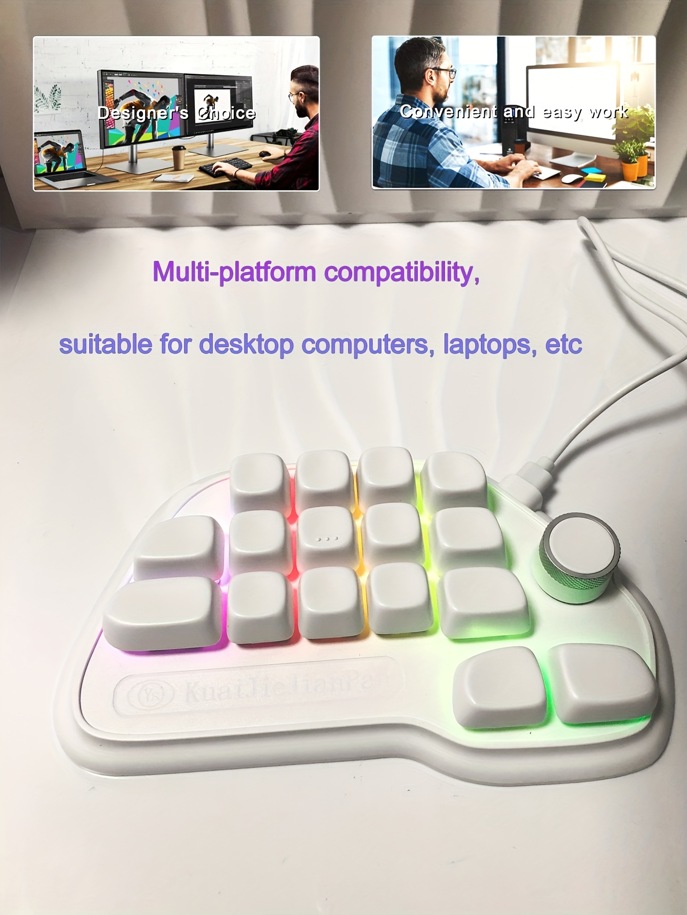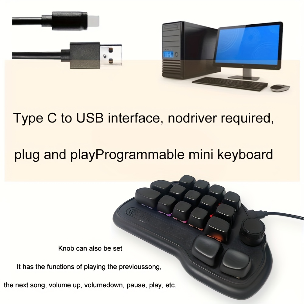 17-key mechanical keyboard, Type-C wired connection, easy to use, RGB backlight, multimedia knob, suitable for office and gaming, pleasant key sound, lightweight and portable, compact design, can be used by simply plugging in the Type-C connection