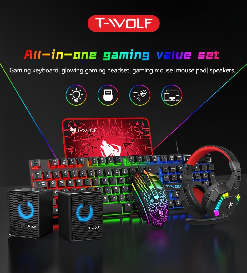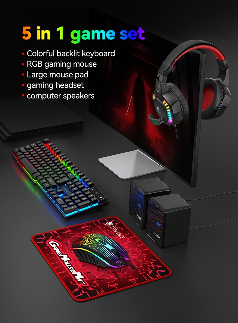 5-in-1 RGB Gaming PC Setup Bundle: RGB Backlit Keyboard, Mouse, Headphones, Speakers & Mouse Pad with, RGB Sync Compatible (No External Switches) - Complete Computer Kit for PC Gamers