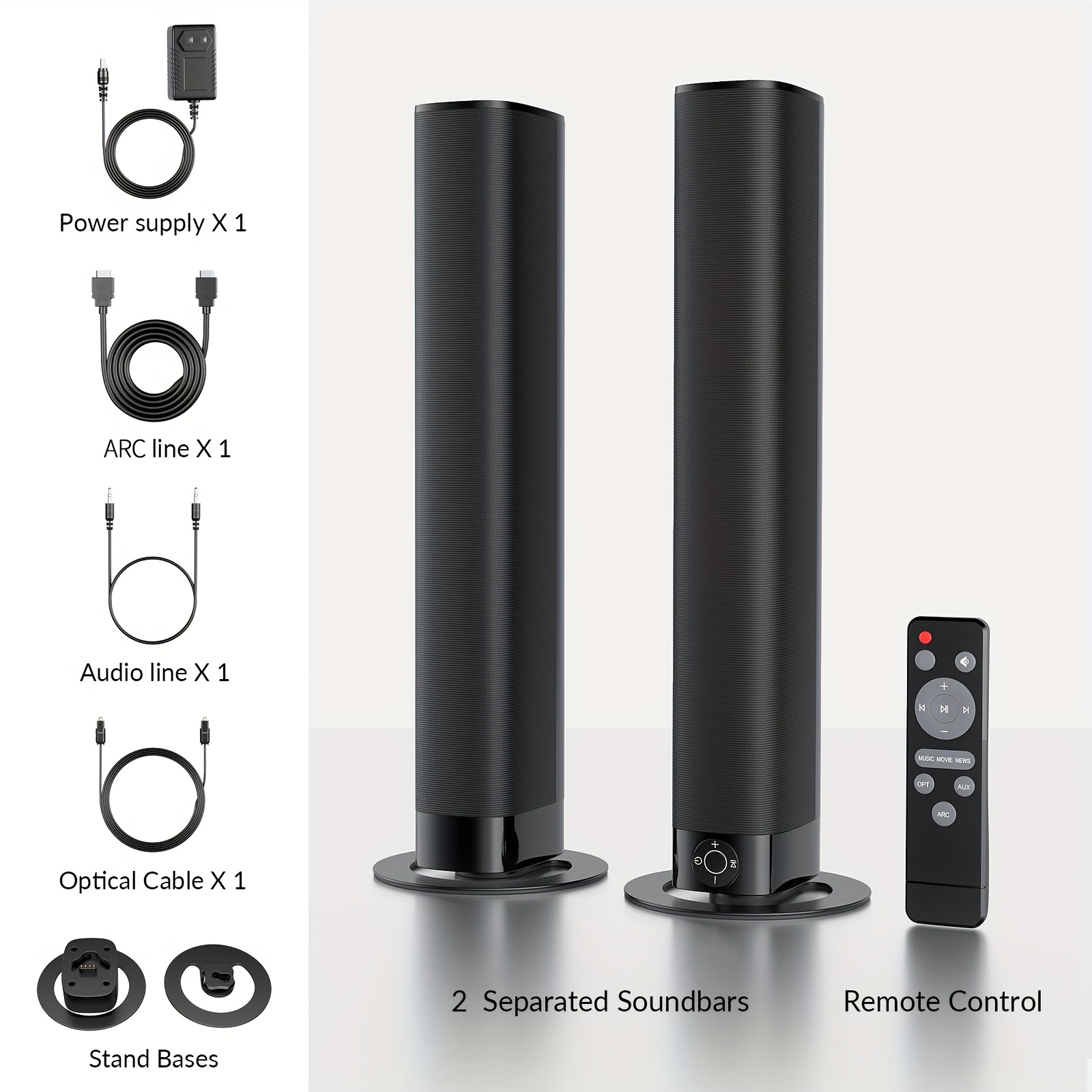 60W TV Speakers, Smart TV Speakers Wireless Speaker, Wired and Wireless Speakers, with ARC/ Optical/ AUX Connection, Detachable 32inch Speakers