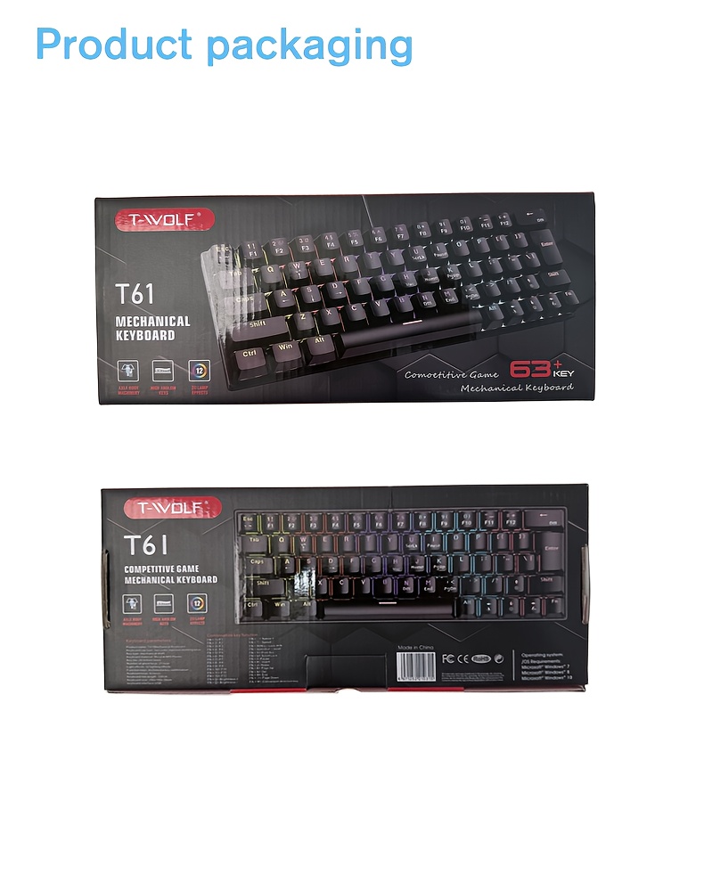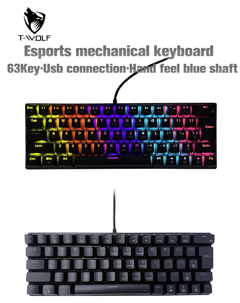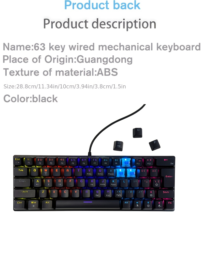 63-Key Mechanical Keyboard with 12 Lighting Effects, Compact Ergonomic Design, USB Wired, Plug & Play, Multi-System Compatible, No Battery Needed, Ideal for Office and Gaming, Gaming Keyboard | Ergonomic Keyboard | USB Wired Keyboard, Gaming Keyboard, Mechanical Keyboard, Cave Spider Keyboard, Gaming Keyboard | Compact Ergonomic, Gaming Wireless Keyboard