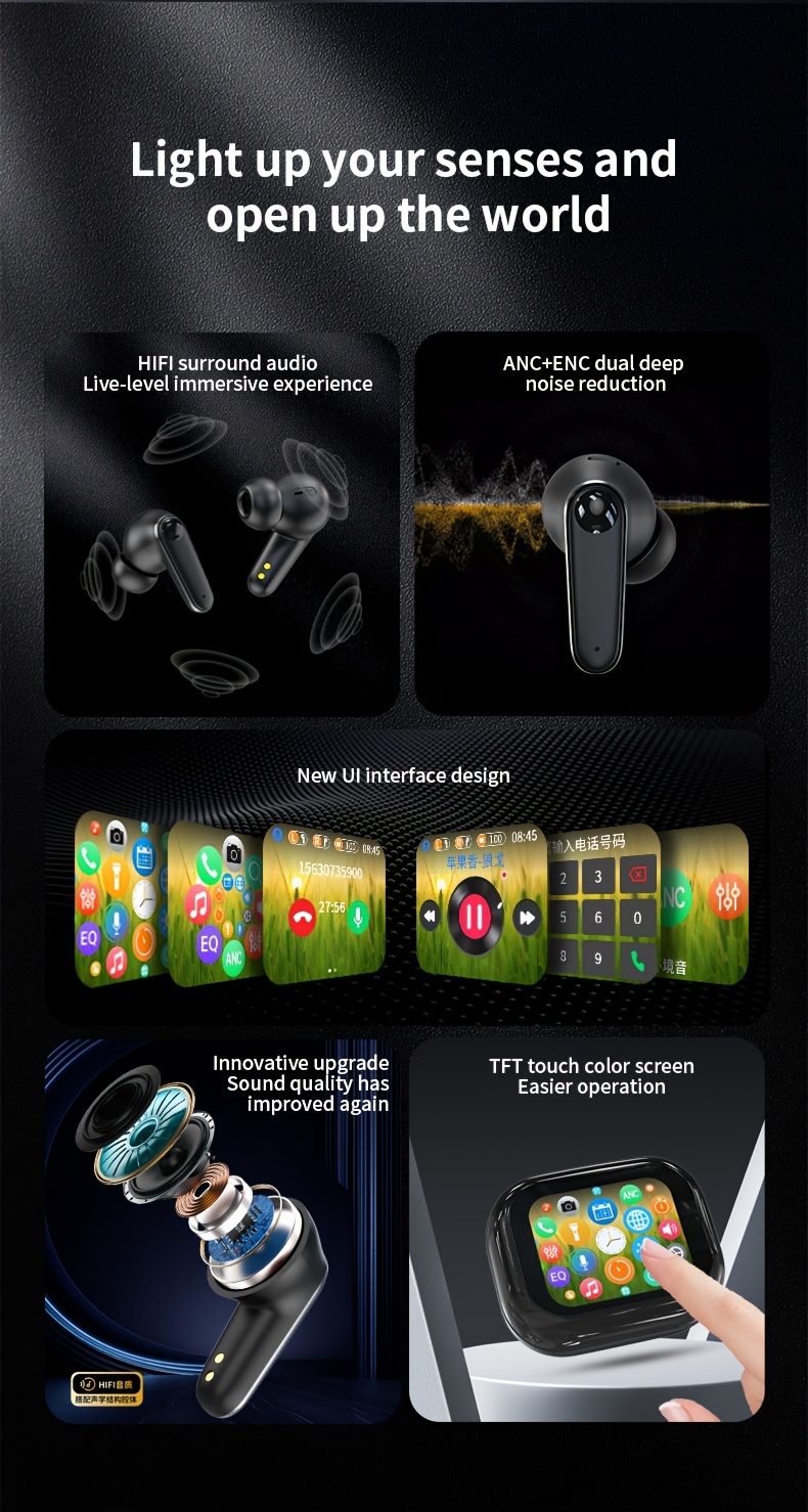 Ai Translator Earbuds Smart Touch Screen Translator Earphone 144 Languages Translator EarbudsTravel Abroad Easy Conversation Translating Earbuds International Conversation Multilingual Translator Lightweight Earphones Modern Translator Christmas gift