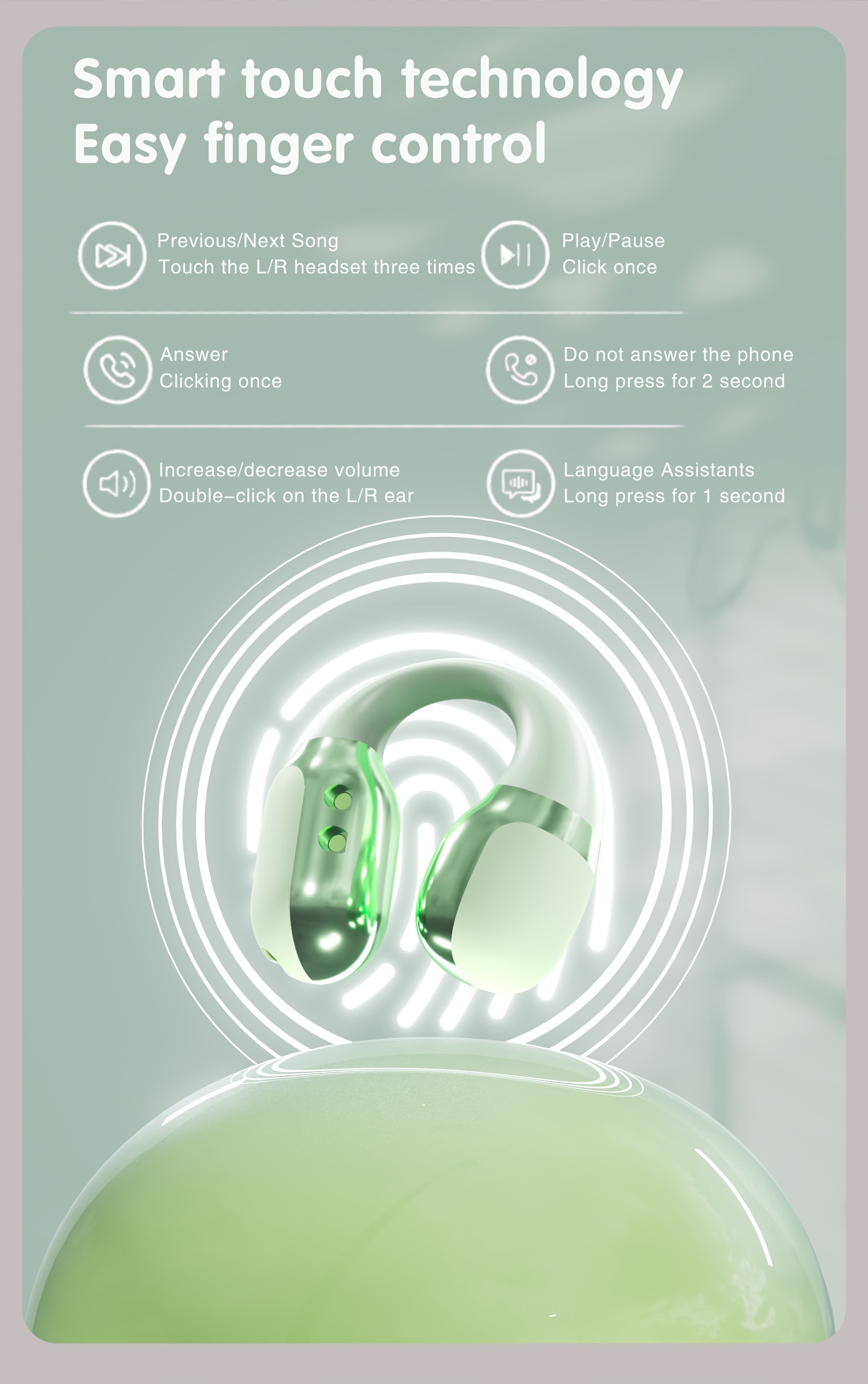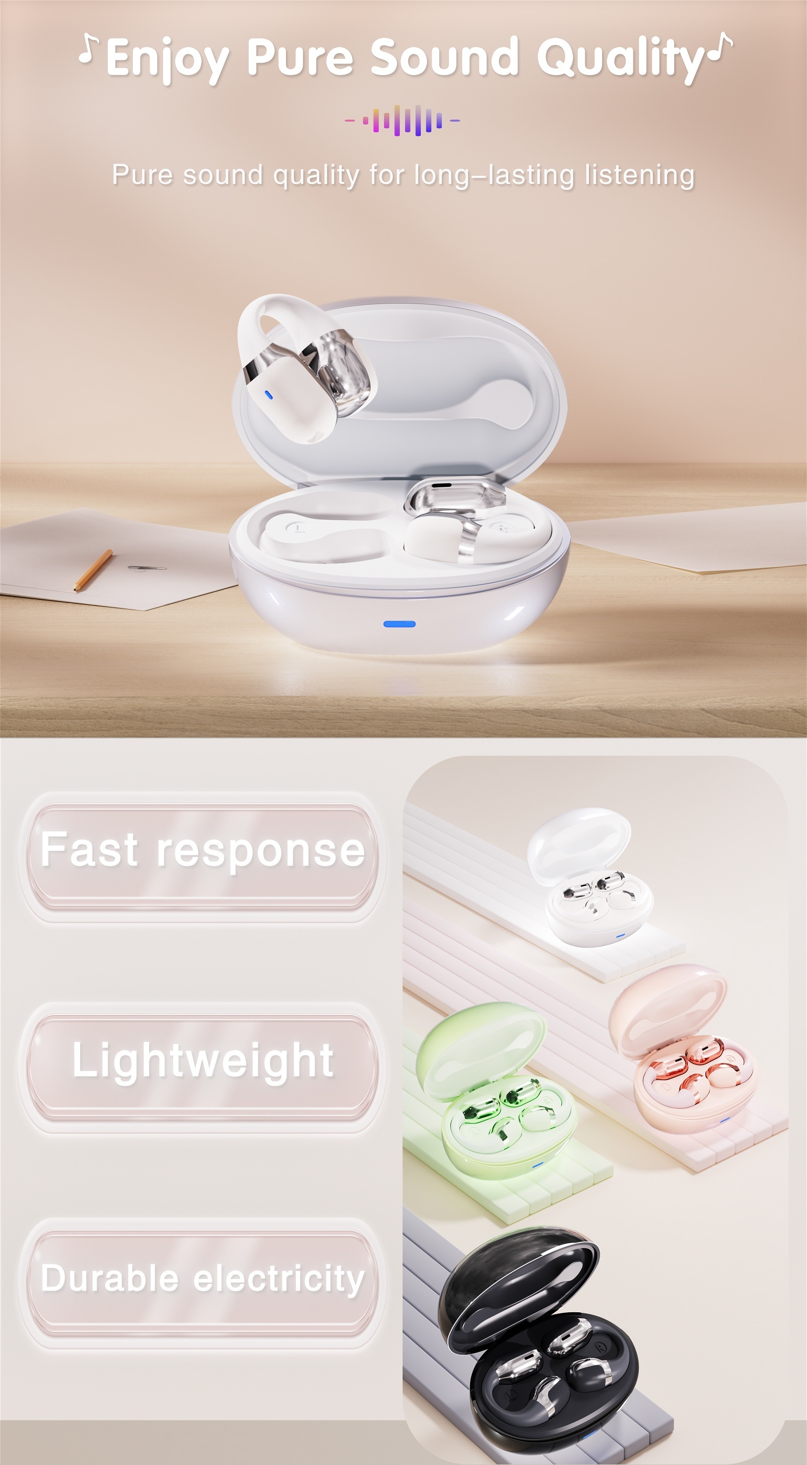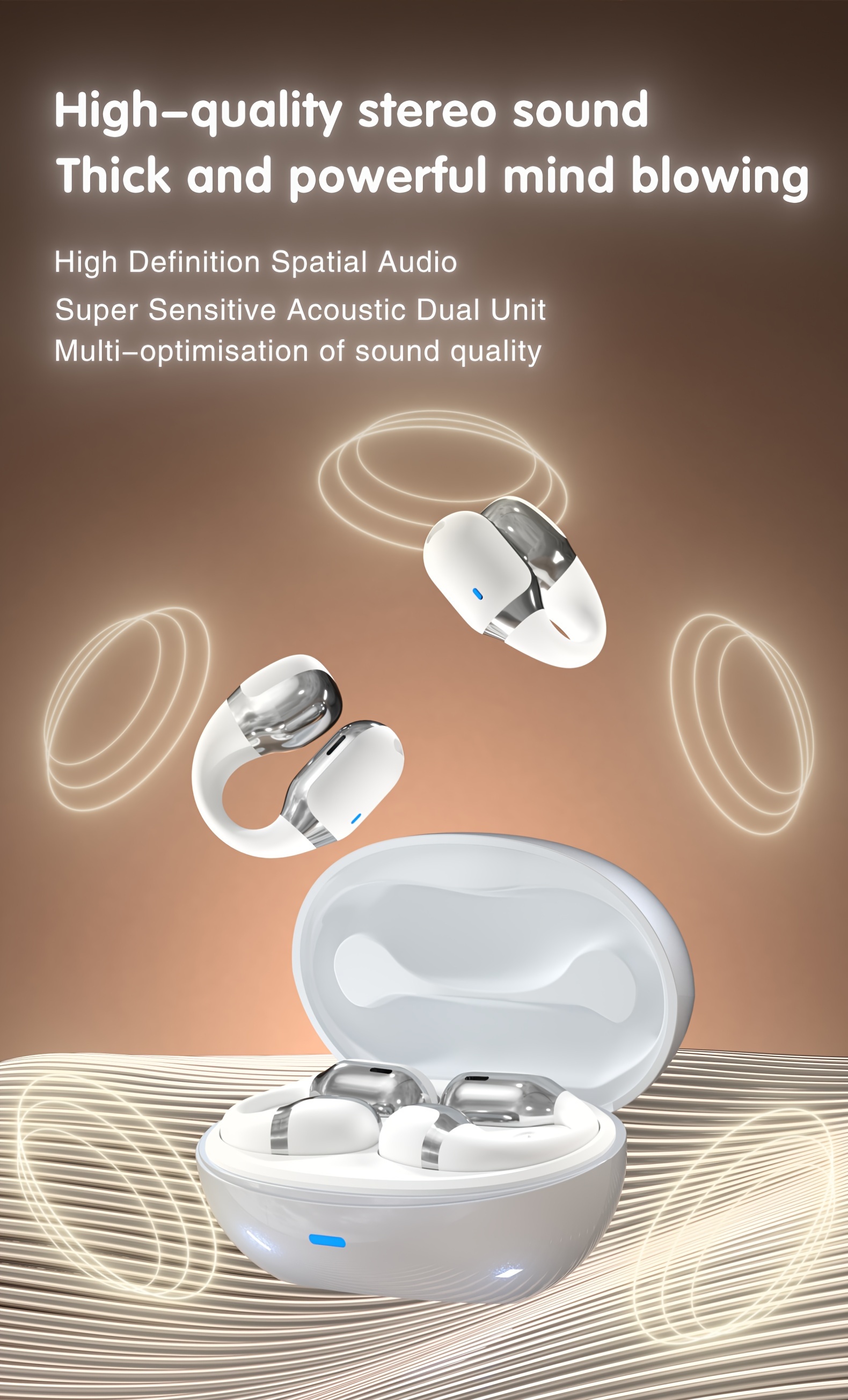 New Clip-On Wireless Earbuds, Over-Ear Music Sports Running Headphones with Ultra-Long Battery Life and Open-Ear Design, Open Ear Headphones, Lightweight Headphones, Clipon Earbuds, Comfortable Wear, Sweatresistant Design, Noisefree Audio, Touch