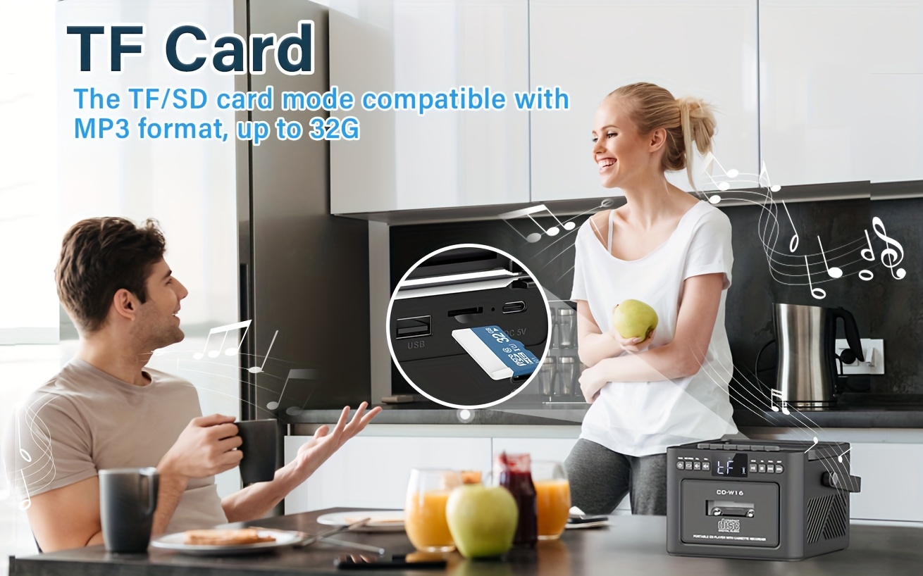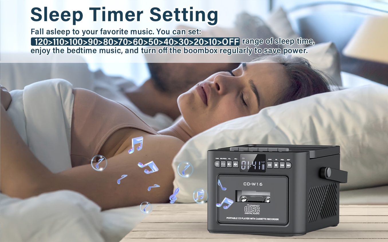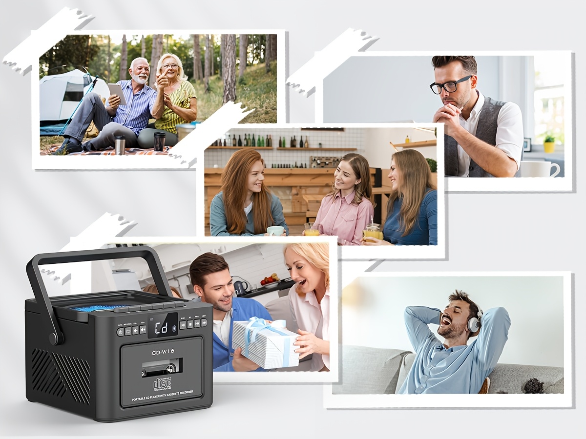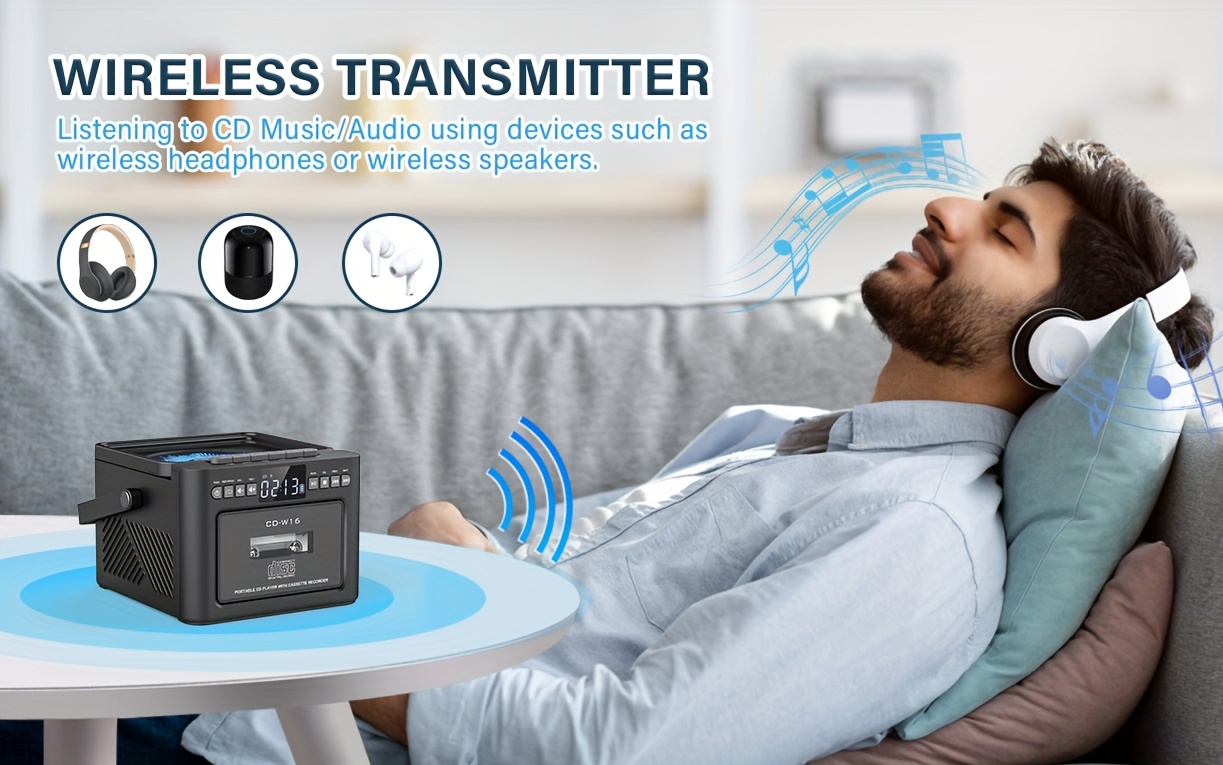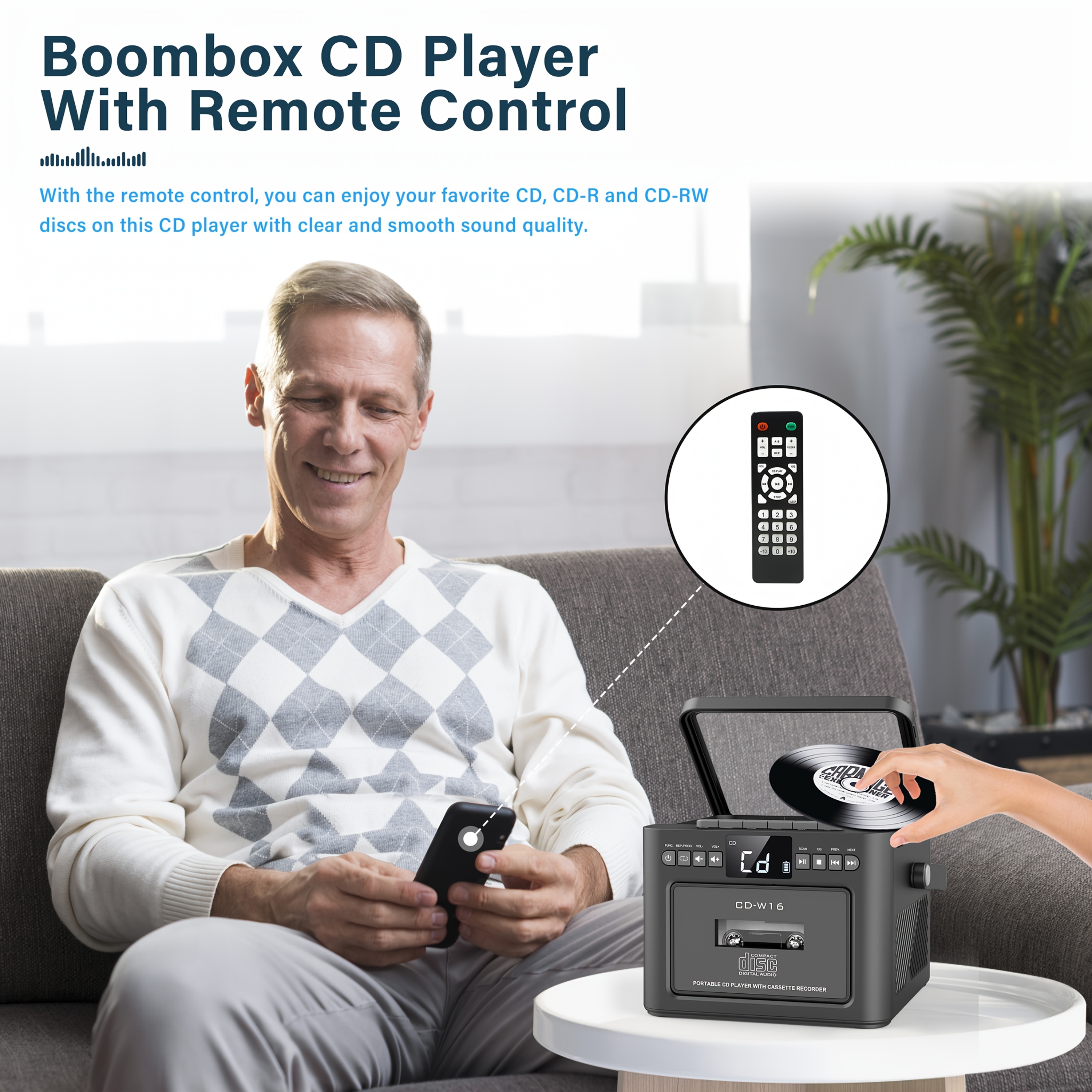 Boombox Cassette CD Player with 5000mAh Battery, 5W Dual Stereo Speakers, Rechargeable CD Player with FM Radio, Remote Control, Tape Recording, 3.5mm Earphone Jack, AUX/Micro SD/USB for Home