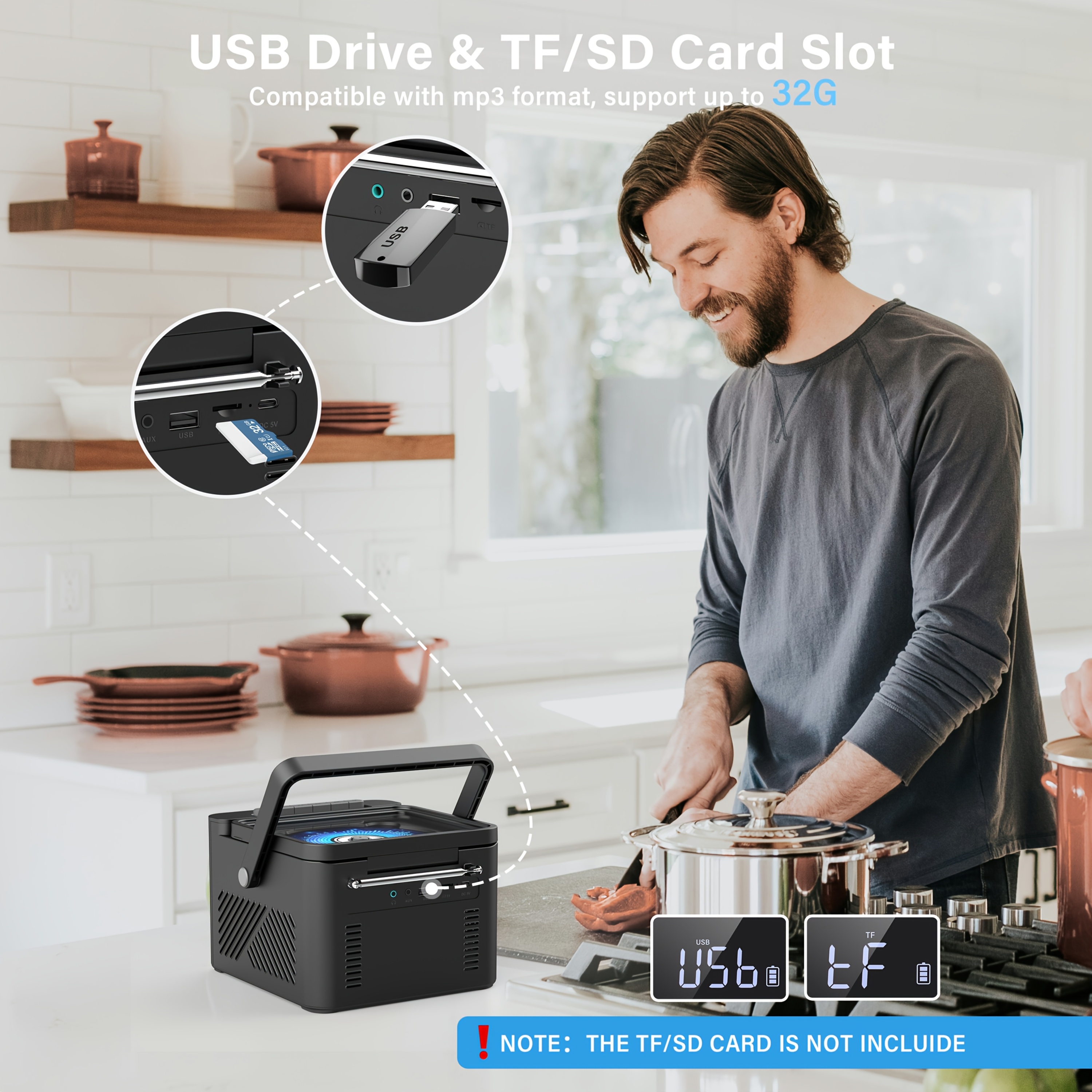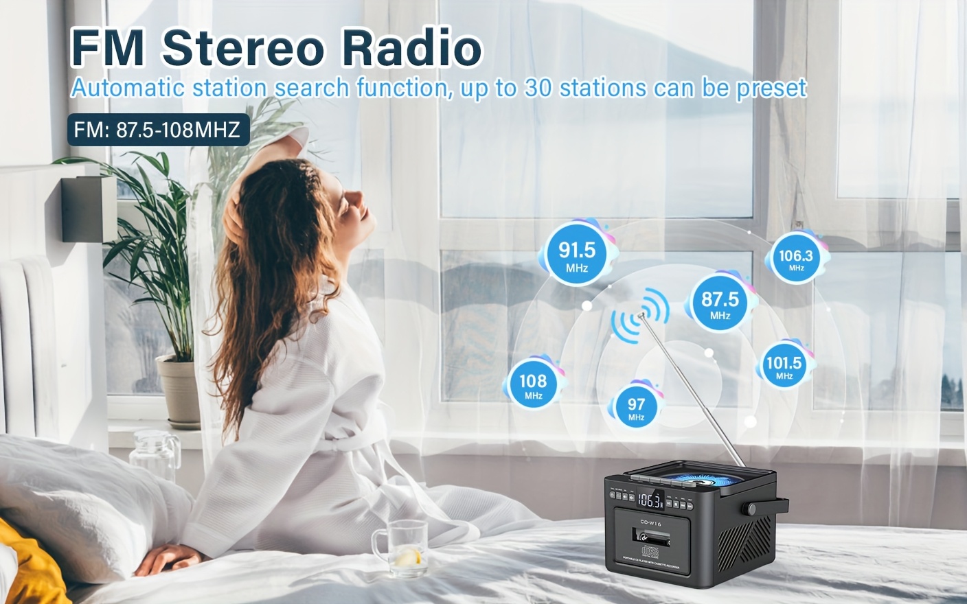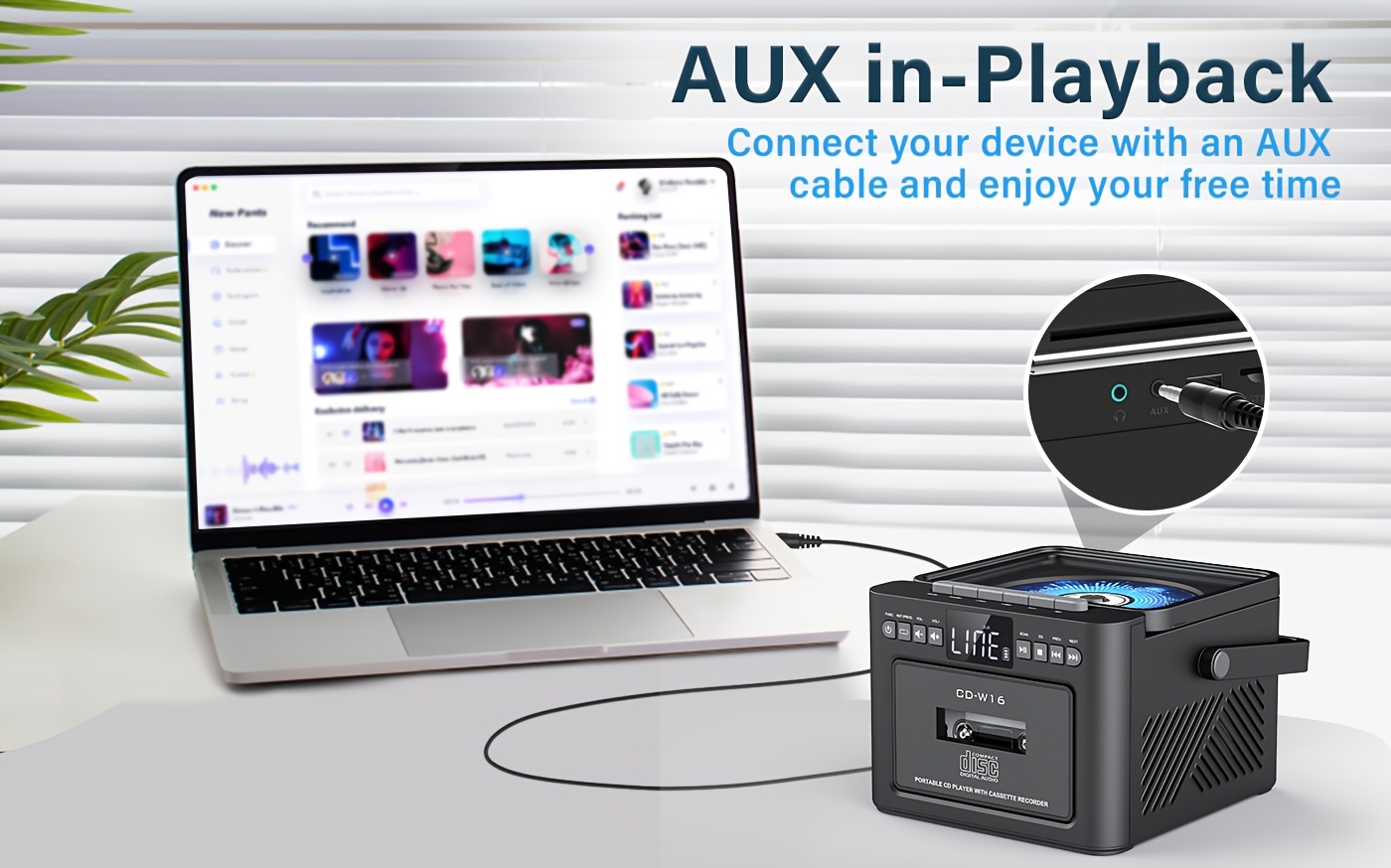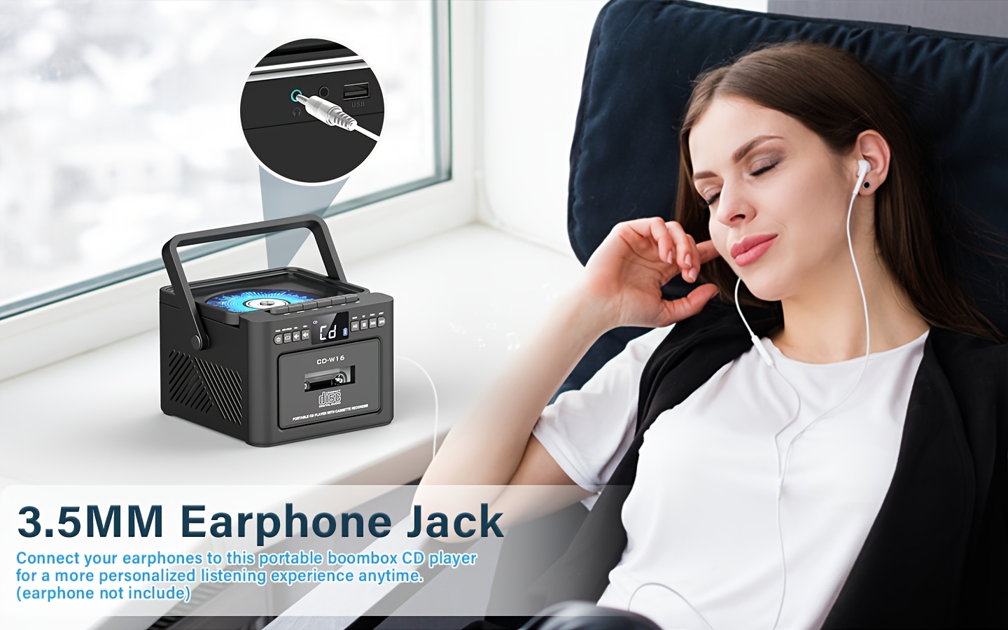 Boombox Cassette CD Player with 5000mAh Battery, 5W Dual Stereo Speakers, Rechargeable CD Player with FM Radio, Remote Control, Tape Recording, 3.5mm Earphone Jack, AUX/Micro SD/USB for Home