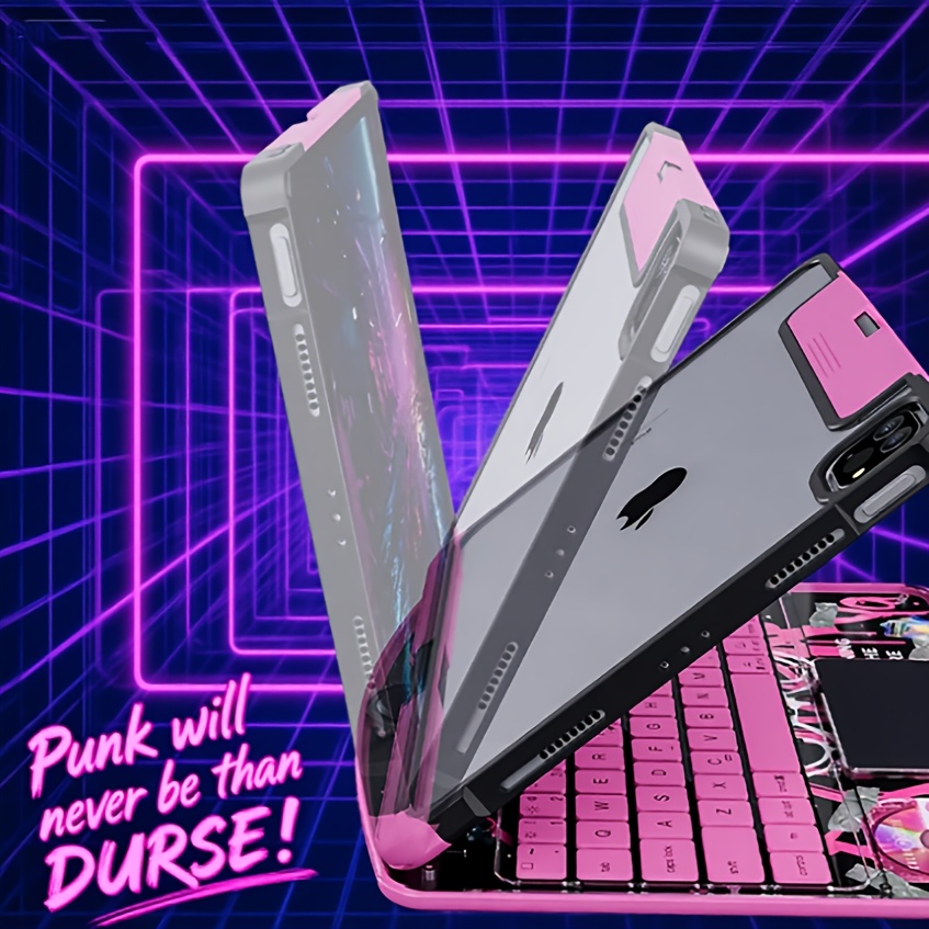 For IPad Air 6 7 11-inch Protective Case With Keyboard, 7-color Backlit Lifting And Rotating Wireless BT Keyboard Protective Case With Pen Holder(pink)7