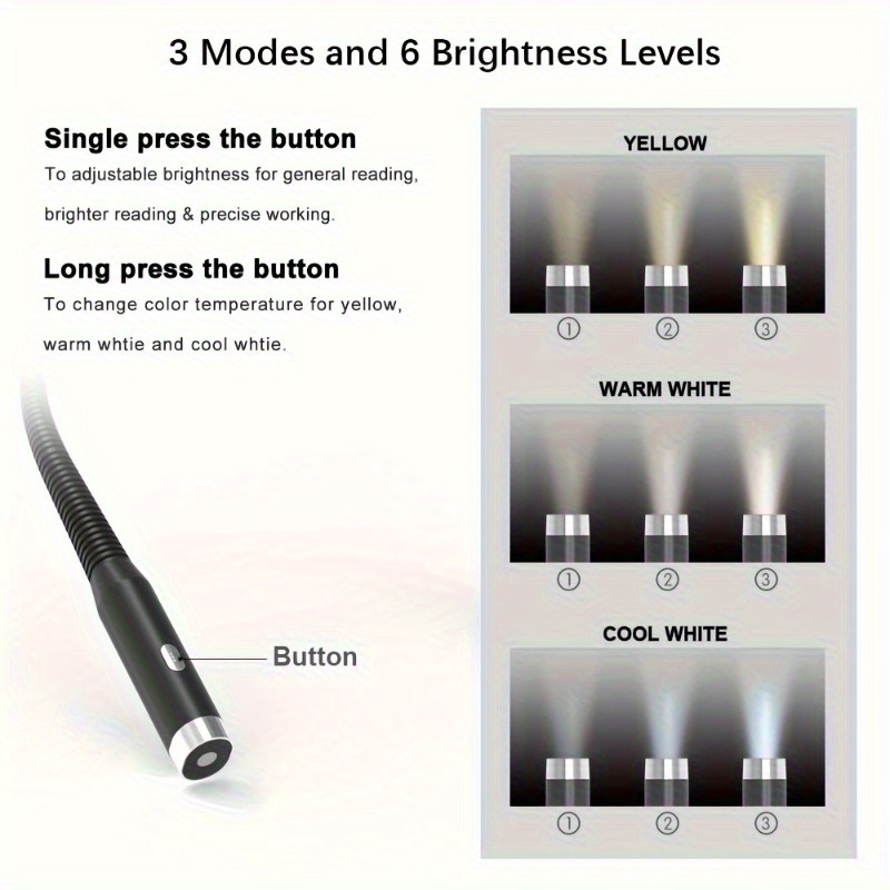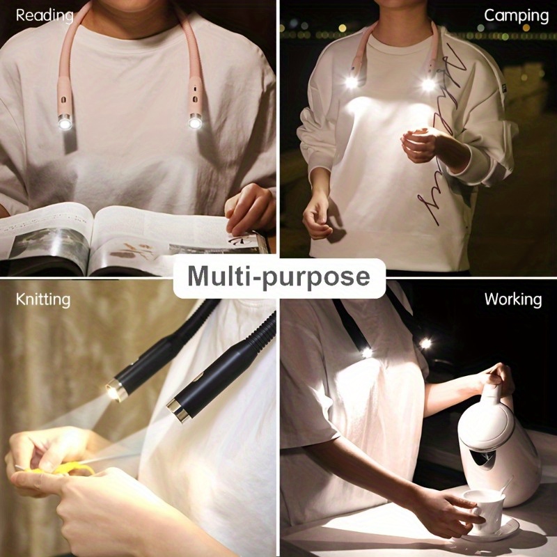 LED Neck Reading Lamp, Bed Reading Lamp, Tri-color Dimming, 6 levels of brightness for cozy bedtime reading, knitting & crafting, camping, outdoor hideaway setup, ideal gift for Halloween & Christmas!, Camping Lantern, Knitting Lamp, Adjustable Lamp