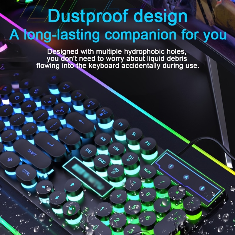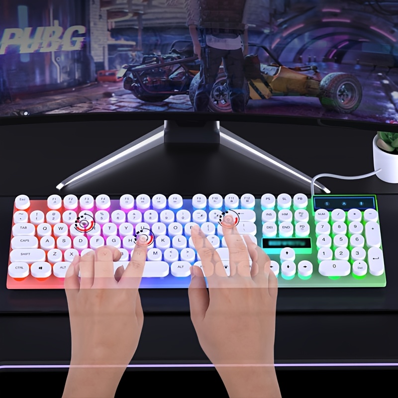 Mechanical Keyboard Wired Illuminated Keyboard Retro Punk Keycaps Gaming E-Sports Office Desktop Computer Peripheral USB Plug and Play Mechanical Feel Mixed Color Backlit, Keyboard for Computer, Gaming Keyboard, Punk Style Keys, Durable Keycaps, E-Sports Gear, Punk Aesthetic, Sturdy Construction, Usbpowered Keyboard, Streamers, Office Workers