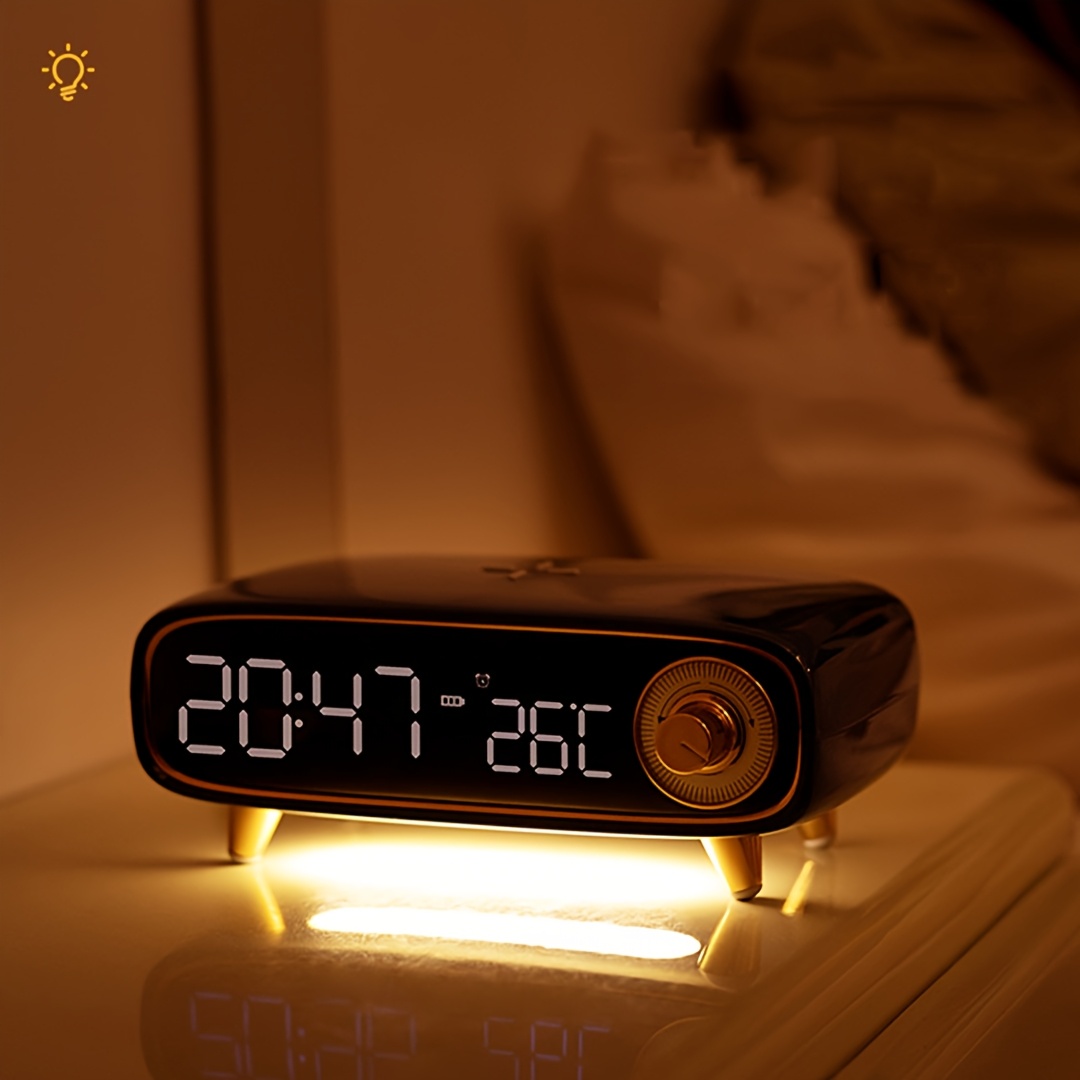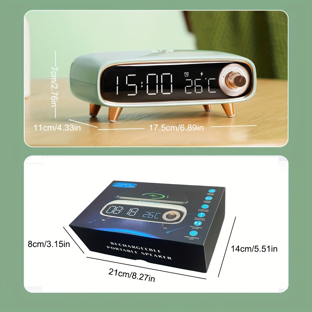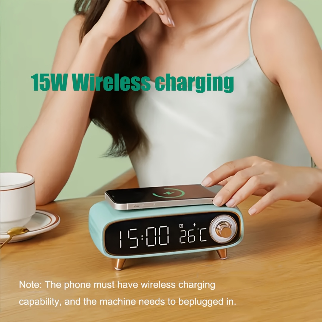 Retro Desktop Wireless Speaker, 15W with Charging Function, Clock Alarm & Temperature Display, Ambient Light - Multi-Functional Creative Design for Bedside/Office Use or as a Gift, Home Decor Gadget, Bedside Speaker, Stylish Decor, Vintage Aesthetic, Sleek Material, Compact Build, Multifunctional Device, Office Workers, Home Users