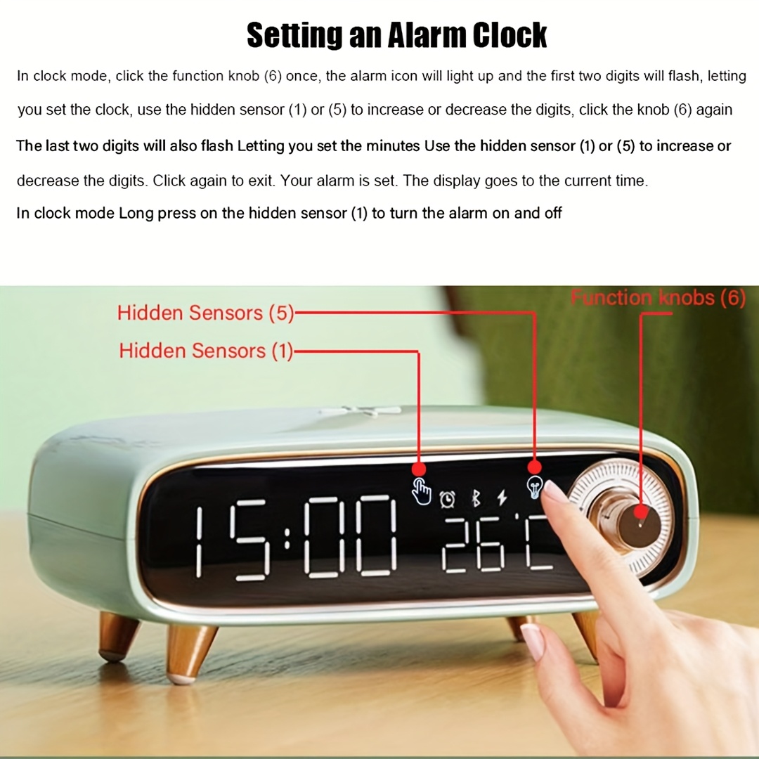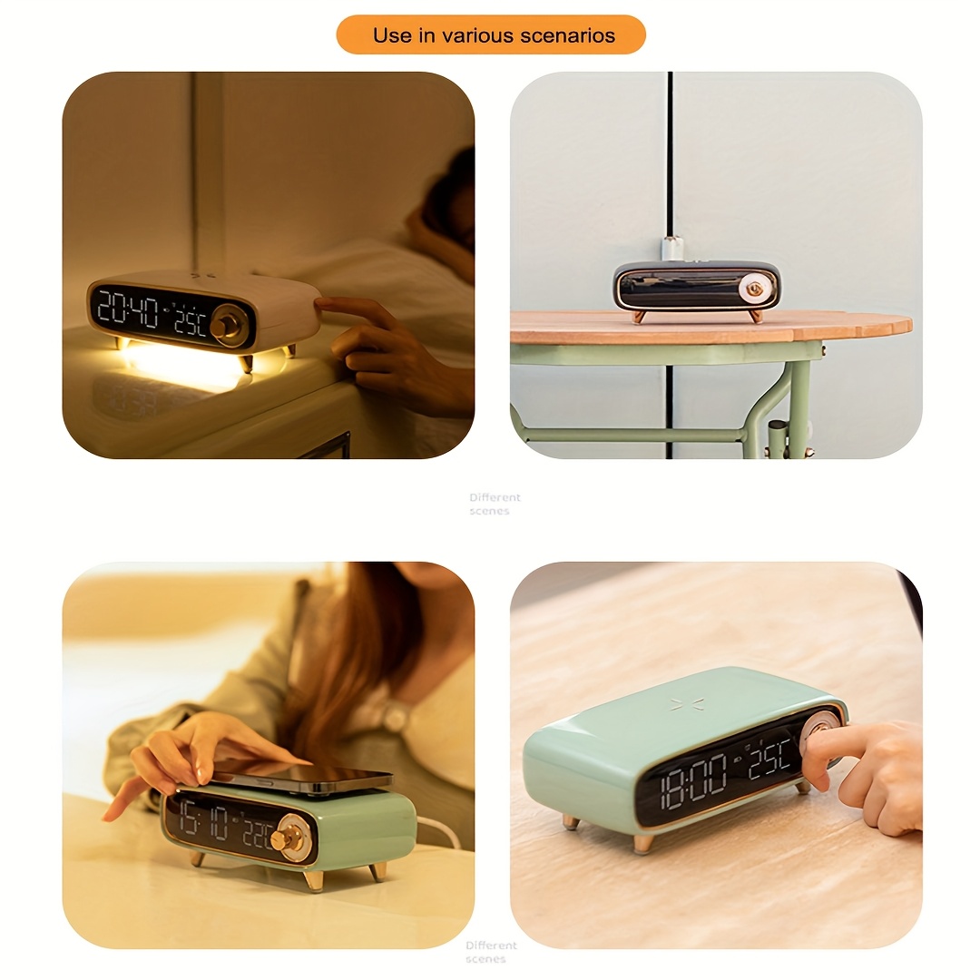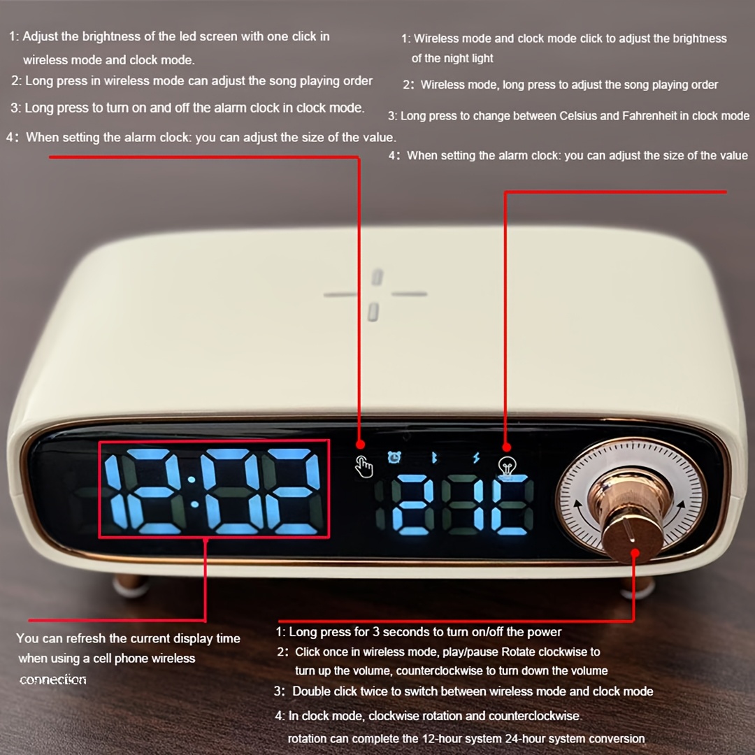 Retro Desktop Wireless Speaker, 15W with Charging Function, Clock Alarm & Temperature Display, Ambient Light - Multi-Functional Creative Design for Bedside/Office Use or as a Gift, Home Decor Gadget, Bedside Speaker, Stylish Decor, Vintage Aesthetic, Sleek Material, Compact Build, Multifunctional Device, Office Workers, Home Users