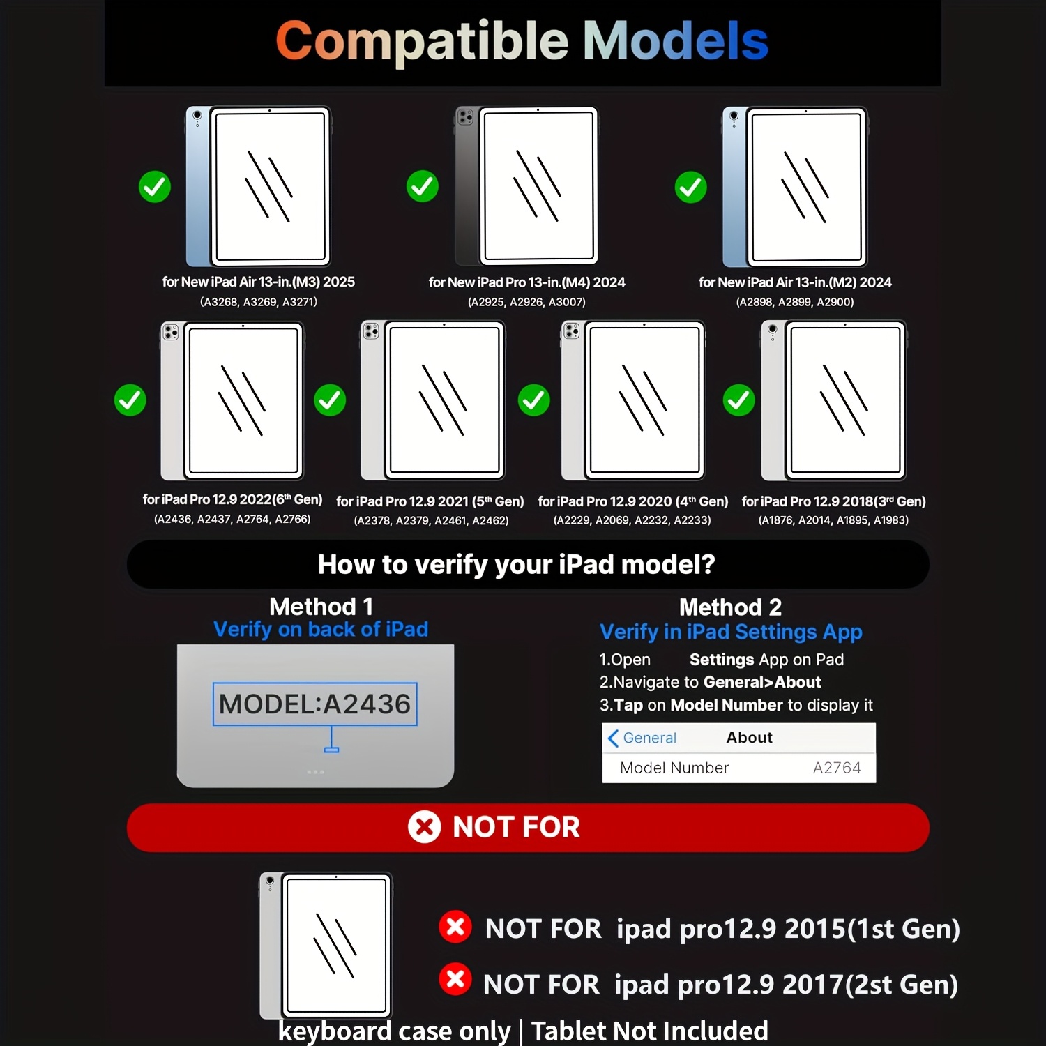 Rotatable Bracket&Touch Case With Keyboard For IPad Pro 13-inch (M4, 2024), for IPad Air 13-inch (M3, 2025/M2, 2024) & for IPad Pro 12.9 (6th/5th/4th/3rd Gen), Trackpad, 360° Rotatable, Mixed Colors Backlit.