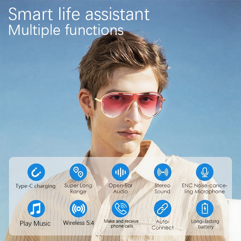 [Smart Glasses] new smart glasses, high-definition voice calls and high fidelity music, built-in microphone and speaker, smart touch, smart audio glasses, Type-C charging, comfortable to wear, suitable for sports, music, business, daily home wear, suitable for both men and women, suitable for holiday gifts, Handsfree Calling, Sports Headphones, Sleek Glasses, Lightweight Design, Ergonomic Design, Comfortable Fit, Earbuds, Touch Control, Fitness Enthusiasts, Techsavvy Users
